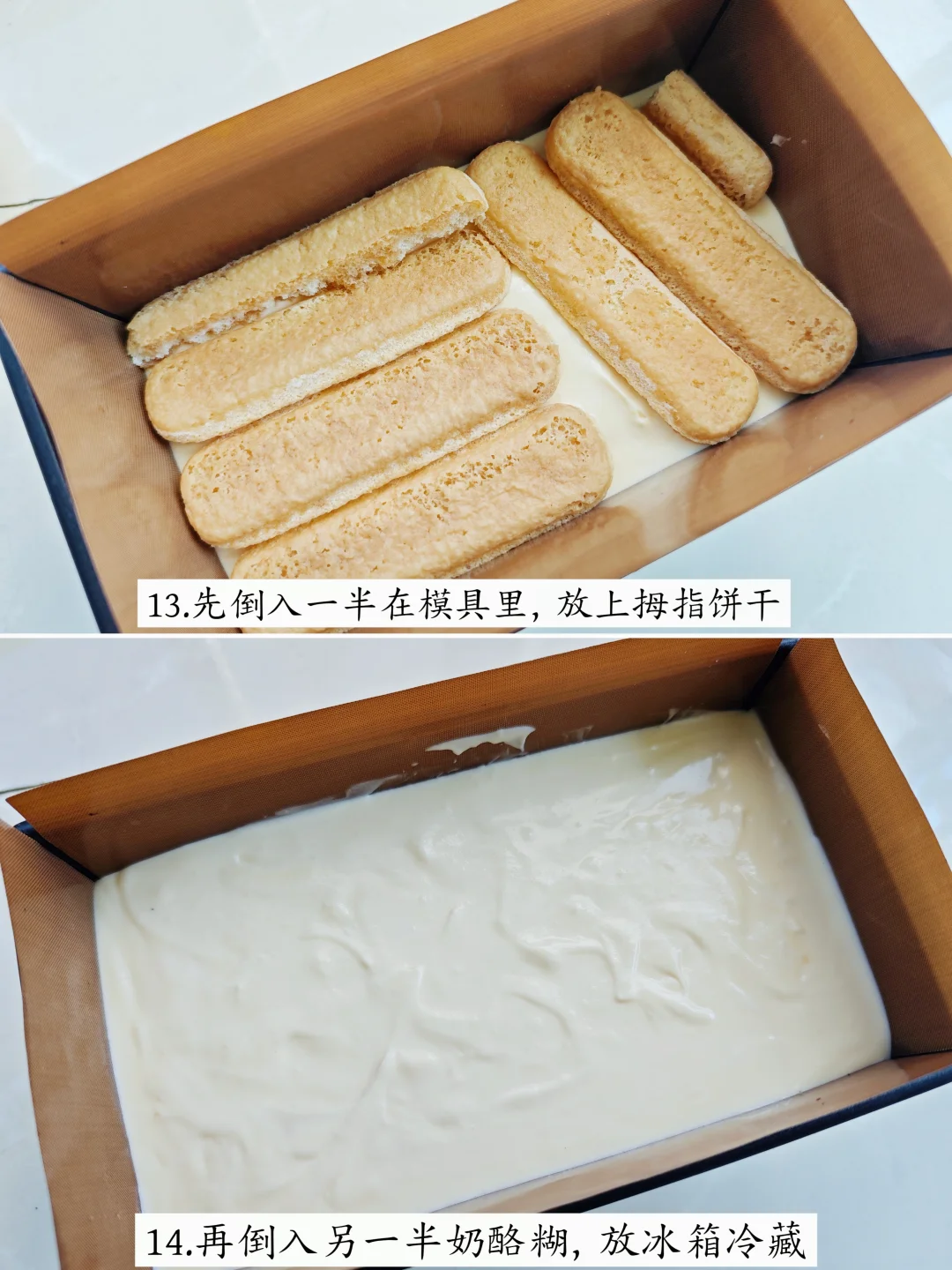 既想吃巧克力浓郁,松软的布朗尼蛋糕,又想吃奶香十足,绵密口感的提拉米苏怎么办⁉️当然是把它俩组合在一起了‼️一口下去,3重口感 · 👩🏻‍🍳【配方:】 🍫布朗尼蛋糕层: 黑巧克力90g|黄油50g|全蛋液120g|细砂糖50g|低筋面粉45g |可可粉5g 🍫提拉米苏蛋糕层: 马斯卡彭芝士250g|淡奶油200g|细砂糖20g+30g|无菌蛋黄2个|热牛奶50g|吉利丁片10g|手指饼干|浓缩咖啡液 · 👩🏻‍🍳【制作步骤:】 1️⃣隔热水融化黄油🧈和巧克力🍫,常温全蛋液与细砂糖一起打发至蓬松发白,倒入融化的巧克力黄油,混合均匀 2️⃣依次倒入可可粉和低筋面粉,翻拌均匀,倒入模具里 3️⃣放入预热好的烤箱180度30分钟,晾凉备用 4⃣️制作提拉米苏的蛋黄🥚和30g细砂糖隔热水打发至颜色变浅、体积膨胀、质地浓稠 5⃣️将马斯卡彭奶酪室温软化后,与蛋黄糖霜搅拌均匀; 淡奶油➕20g细砂糖打发浓稠,倒入奶酪糊里,翻拌均匀; 热牛奶与冷水泡软的吉利丁片搅拌融化,倒入奶油奶酪糊里,搅拌均匀。 6⃣️手指饼干两面蘸取浓缩咖啡液,整齐码放在布朗尼蛋糕上 7⃣️均匀铺上一半的奶酪糊,再码放一层手指饼干,再倒入另一半的奶酪糊。放入冰箱冷藏2个小时以上。 8⃣️取出后,撒上满满一层可可粉