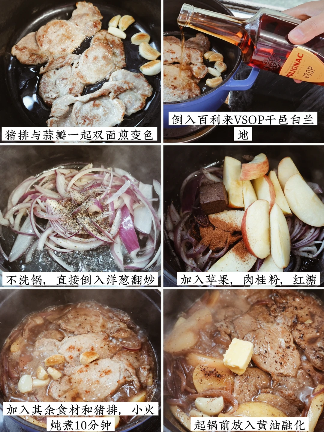 梅花肉 苹果2个 洋葱1/2个 百利来VSOP干邑白兰地50ml