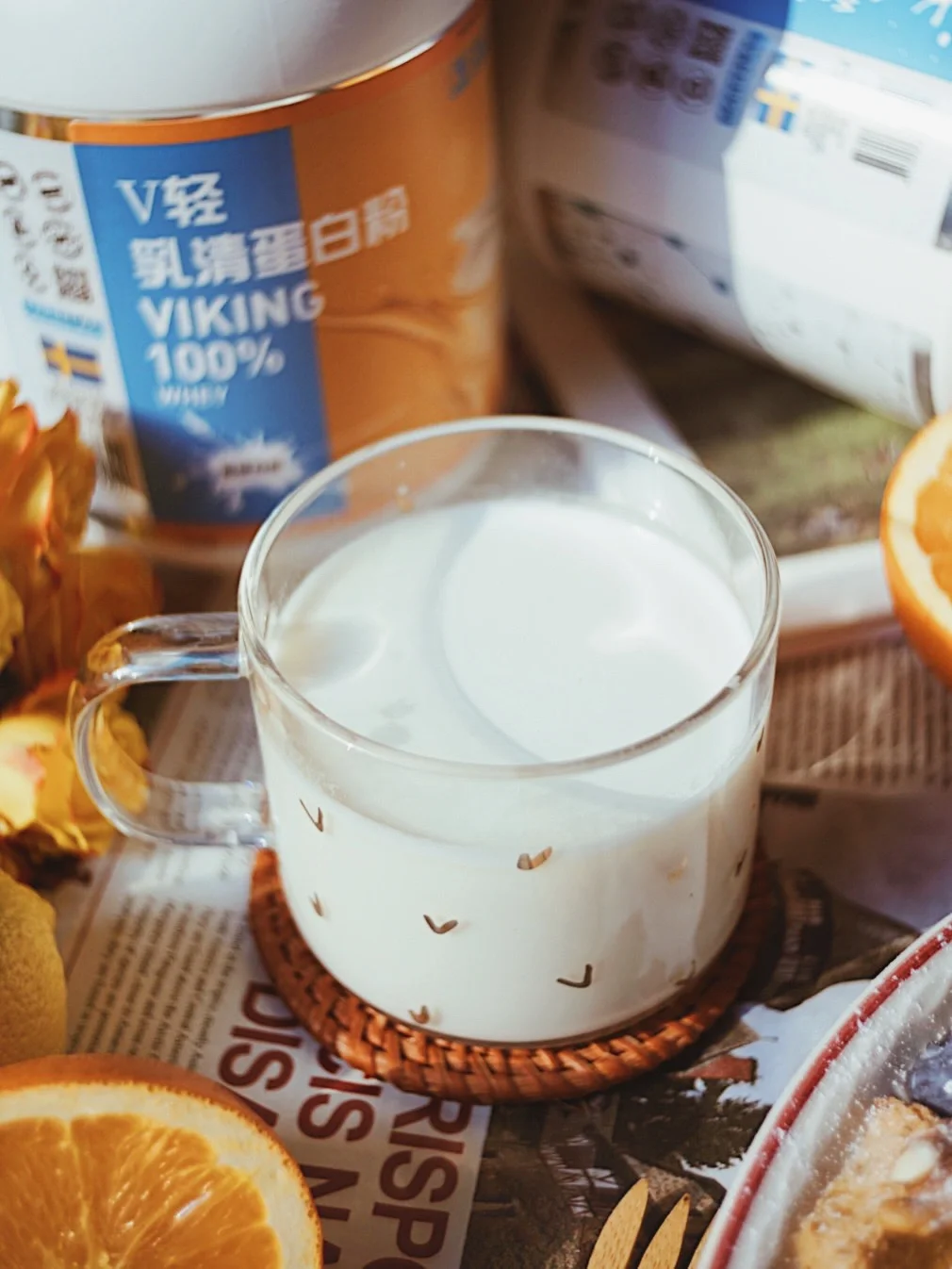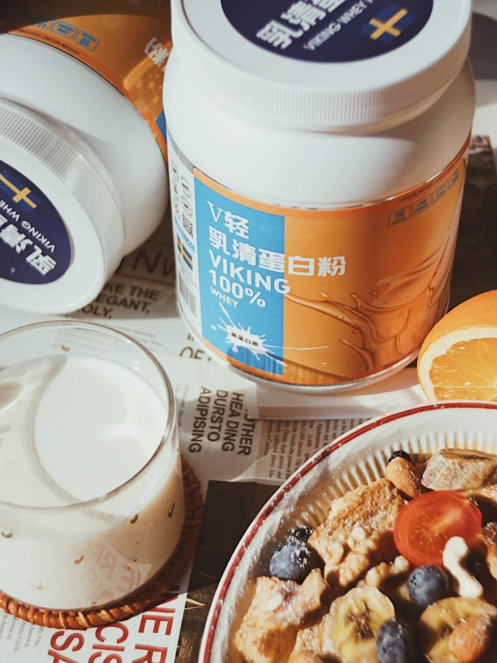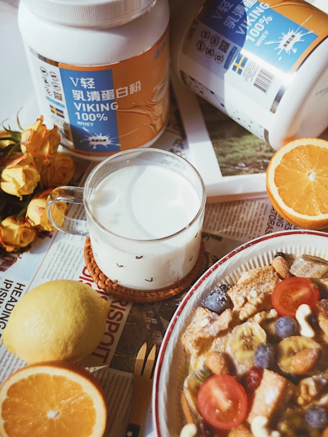 ▫️除此之外,我还用200ml的牛奶搭配30g的V轻乳清蛋白粉,搅一搅,冲调一杯蛋白奶昔。