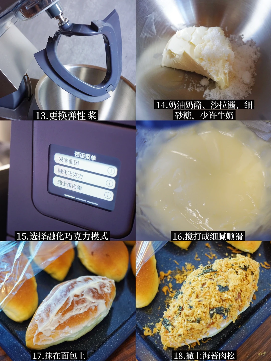 咸面包是怎么都吃不腻的,只要人在面包房,手就一定在满满的肉松面包上,只不过外面卖的肉松给的太少,吃的太不过瘾了[哭惹R]索性自己入个厨师机在家做,我新入手的博朗7系厨师机,自带的发酵加热功能,还能计时称重⏱省去很多制作时间,还解决了我费大劲都揉不出手套膜的窘迫。