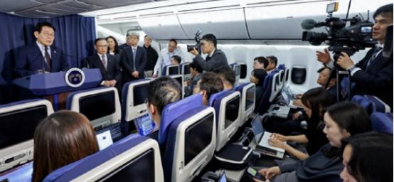 韩国总统李在明首次就“高市早苗涉台错误言论”表态,根据韩国《东亚日报》的11月23日(昨日)的报道,韩国总统李在明在结束南非G20峰会的议程之后,乘坐飞机前往土耳其访问。在飞机上,他接受随行记者采访时(图2)说:“韩国外交的基本原则是以韩美同盟为根基,同时稳定地处理好对华关系。” 韩国总统李在明总算对那事儿开口了!就是日本首相高市早苗之前发表的涉台错误言论,这事儿闹了有阵子,李在明直到11月23日才首次公开表态。 据韩国《东亚日报》当天的报道,这表态是他在飞机上跟记者聊出来的——刚结束南非G20峰会的议程,正坐着专机往土耳其访问的路上,随行记者抓着机会把问题抛了出去,他也就顺着说了自己的想法。 最核心的话就两句,一句是“韩国外交的基本原则是以韩美同盟为根基,同时稳定地处理好对华关系”,另一句更实在,“韩国位于大陆与海洋之间,必须奉行务实外交,否则稍有不慎就可能会沦为夹缝中的虾米”。 这话听着糙,但把韩国当前的外交处境说得明明白白,尤其是在高市早苗捅出涉台言论这个节骨眼上,每一个字都藏着考量。 要知道高市早苗这事儿可不是小打小闹,作为日本政府首脑,公开发表涉台错误言论,直接碰了地区局势的敏感神经。周边国家都在盯着,韩国更是被架在一个尴尬的位置上——一边是跟美国绑得死死的同盟关系,美国在亚太地区的战略里,韩国是关键一环;另一边是中国这个搬不走的邻居,也是韩国数一数二的贸易伙伴。 高市早苗一说话,等于把韩国往中间推,不表态不行,表态说错了更不行。李在明选在飞机上回应,其实挺有讲究的。 既不是在正式的新闻发布会,也不是在双边会谈场合,氛围相对轻松,但随行记者都是韩国主流媒体的人,说出去的话又能保证传播力。 他先把“韩美同盟”放在前头,这是韩国外交的老规矩,毕竟美军在韩国有驻军,双方在军事、经济上绑定得很深,最近这段时间韩美还在加码合作,美国驻韩使馆代理大使凯文·金刚在11月20日的论坛上夸韩国是“模范盟友”,还说要一起强化国防能力,引入核潜艇都提上了日程。 这种时候,李在明肯定得先稳住美国这边,不然同盟关系出点岔子,他这个总统不好交代。 但光提美国可不行,紧接着就跟上“稳定地处理好对华关系”,这话是说给中国听的,也是说给韩国国内企业听的。中韩贸易额摆在那儿,韩国的汽车、电子元件很多都靠中国市场,要是因为外交表态影响了生意,韩国商界第一个不答应。 而且最近中韩之间还有点小摩擦,韩国国会之前还无端指责中国在黄海的“深蓝1号”“深蓝2号”养殖网箱是“非法设施”,中国驻韩使馆后来专门发了声明澄清,说这是合法的渔业装备。李在明肯定清楚,这种小摩擦要是升级,对谁都没好处,所以“稳定”两个字说得特别重。 那句“夹缝中的虾米”,算是把韩国的无奈说透了。韩国地理位置太特殊了,北边是朝鲜,南边是海洋,西边对着中国,东边挨着日本,周围不是大国就是敏感邻居。 历史上韩国就吃过夹在中间的亏,现在全球化时代,经济、安全上的牵连更紧,稍微站错队就可能两头受气。就像这次高市早苗涉台言论,要是韩国跟着日本附和,中国肯定不高兴,贸易上说不定就有反制;要是跟中国一起批评日本,美国又会觉得韩国不听话,同盟关系要打折扣。 所以李在明才说“必须奉行务实外交”,说白了就是不选边站,怎么对韩国有利就怎么来。 他还补了一句“应该冷静观察当前局势,尽最大努力确保韩国的国家利益不受损害”,这话算是给表态定了调——不掺和别人的是非,先顾好自己。这其实也是韩国最近的外交思路,比如在朝鲜问题上,李在明刚说要重启韩朝对话,不想让半岛局势恶化。 在地区安全上,美国海军作战部长考德尔之前访韩时说韩国核潜艇“用于牵制中国很自然”,韩国总统室马上就淡化,说“并非特指某个国家”。这些动作都跟“务实”两个字对上了。 韩国国内对李在明的这个表态,反应还挺一致的。主流媒体都觉得这是“最稳妥的选择”,商界更是松了口气,毕竟没人想看到中韩关系闹僵。有业内人士跟记者说,现在韩国经济本来就不太景气,出口要是再受影响,就业、增长都会出问题,“总统这句话算是给我们吃了颗定心丸”。 当然也有反对党人士说他“立场不够坚定”,但这种声音没成主流,毕竟大多数韩国人都明白,“夹缝中的虾米”要是硬充大闸蟹,最后只会被夹得粉碎。 其实李在明的表态,也反映了现在很多中小国家的外交困境——在大国博弈之间,怎么守住自己的利益。就像之前俄罗斯的北极LNG-2号项目,被西方制裁得卖不出去,只能打折给中国,也是没办法的务实选择。 韩国现在就是这种情况,不跟美国搞好关系不行,不跟中国处好也不行,只能在中间找平衡。李在明把话说透了,反而比模棱两可的表态更让人放心。