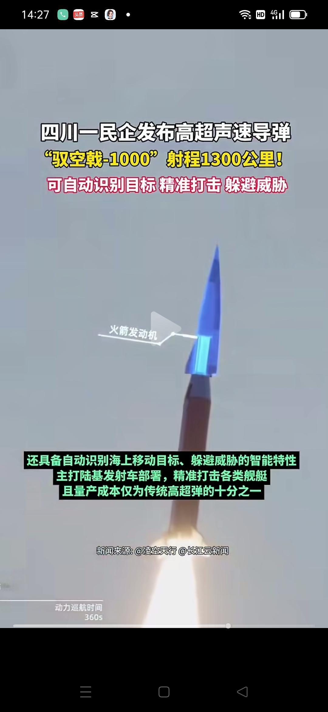 这个爆炸新闻颠覆了全世界,能把日本吓死!中国民企“凌空天行”宣布,自主研发的高超音速导弹“驭空戟-1000”已正式定型并进入批量生产阶段,成本是此类导弹的十分之一(白菜价),最大射程1300公里,有极强的抗电子干扰能力,能够躲避现有防空系统拦截。这可颠覆了军事专家的认知,美日害怕了,惹谁都别惹中国。 这又便宜又好用又恐怖的导弹,因为是民企生产,国家可以放松对几个地区的出口。出口给委内瑞拉,美国航空母舰作废;出口给朝鲜,日本韩国难受;出口给也门胡塞武装,以色列恐怖;我们自己用,全世界邪恶势力瓦解。 这家公司模拟“导弹饱和打击日本本土/美日联合航母编队的画面”视频,要向全世界反复播放,看看美日和整个西方都是什么反应! 中国民企“凌空天行” 导弹科技进展 高超音速导弹 超音速变轨导弹