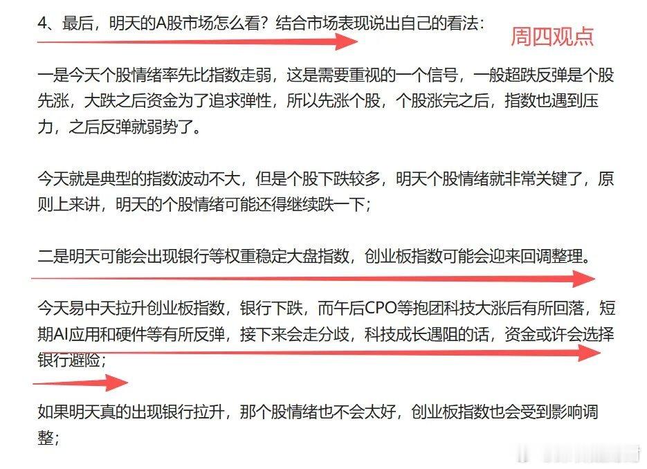 盘后重磅消息引争议!A股两连冲高回落,周五走势定调?连续两天冲高回落,A股又让股民捏了把汗!今天沪指靠银行、保险等权重股护盘收出冲高回落阳线,创业板指更刺激——一度大涨近2%,最终却跌破60日均线收跌,完美印证了此前反复提醒的“60日均线压力预警”。本周反弹目标本就是各大指数的60日均线,如今压力兑现,叠加盘后发改委一则重磅消息引发热议,明天周五A股会怎么走?看完这几点彻底理清思路!1、 反弹遇阻信号明确,年底行情别抱高预期正如上周末预判,本周A股的超跌反弹已触达关键阻力位。从盘面来看,沪指在权重护盘下相对稳健,但创业板指突破60日均线后迅速回调,说明短期资金承接力不足。核心结论很清晰:当前就是超跌反弹而非趋势反转,年底资金避险情绪浓厚,机构为保排名提前“躺平”,不少资金借着反弹兑现利润,这也是反弹难持续的核心原因,大家务必控制参与节奏,别盲目追高。2、 两连冲高回落的底层逻辑:量能+信心+量化扰动很多人疑惑为何A股总陷入“冲高就回落”的循环,其实核心是三大因素叠加:- 量能持续萎缩:今天成交额较昨日进一步缩减,缩量反弹本就缺乏持续动力,一旦遇到阻力位,抛压自然集中释放;- 资金信心不足:经历前期波动后,市场情绪偏谨慎,反弹两三天就有获利资金离场,难以形成合力进攻;- 量化交易搅局:大机构“休假”期间,游资与量化成为市场主导。量化高频“高抛低吸”的套利模式,直接打乱了反弹节奏,让板块难有持续行情,这也是近期追涨容易被收割的关键原因。当下行情完全不同于三季度的持续进攻,“见好就收”才是生存法则,尤其是短期反弹幅度较大的标的,千万别盲目格局。3、 盘后重磅消息引争议:人形机器人“反内卷”,短期利空长期利好?今天盘后,发改委关于具身智能产业的表态引爆市场讨论,核心要点直击当前人形机器人赛道痛点:一是防范重复度高的产品“扎堆”上市,二是健全行业准入和退出机制。要知道,当前A股人形机器人相关企业已超150家,半数以上是初创或跨行入局者,而全球行业仍处早期,2024年出货量仅数千台,赛道确实存在炒作泡沫风险。短期来看,这一政策相当于给热门赛道“降温”,明天人形机器人板块大概率承压,毕竟此前该指数近一年暴涨51.23%,远超沪深300的15.57%,存在获利回吐需求;但长期来看,这是行业“反内卷”的关键一步——避免重蹈光伏行业当年盲目扩张的覆辙,引导资金聚焦AI芯片、六维力矩传感器等8大核心技术攻关,而不是同质化竞争。贝恩公司预测,到2035年全球人形机器人市场规模有望突破1200亿美元,成本降幅将达60%~70%,真正手握核心技术的企业将长期受益。4、 周五走势预判:震荡调整概率大,操作牢记这两点综合盘面、资金面和政策面,明天周五A股大概率延续震荡调整,核心看两个关键:- 量能能否回暖:今天缩量冲高回落已释放谨慎信号,若明天开盘一小时内量能仍跟不上,回落风险将进一步加大,毕竟周五资金避险情绪更强,成交量大概率难有突破;- 权重能否持续护盘:本周科技成长板块已有一定反弹幅度,明天大概率面临资金兑现,指数或仍需银行、保险等权重股托底,但个股赚钱效应可能明显下降。操作上,当前处于多空拉锯的变盘前夜,建议:① 控制仓位为主,避免追涨杀跌,尤其警惕量化高频套利的标的;② 错过前期情绪拐点的,别再盲目跟风反弹股,可等待市场分歧调整2-3天后,低吸超跌震荡的优质标的;③ 中线持股年底以“少动”为原则,短线可围绕低波动板块做差价套利。最后再划重点:盘后政策本质是净化赛道生态,短期虽有扰动,但长期利于优质企业脱颖而出。当前A股反弹遇阻+年底资金谨慎+量化扰动,周五震荡调整是大概率事件,生存比盈利更重要。点赞加关注,后续持续跟踪市场变盘信号,带你精准把握低吸机会!