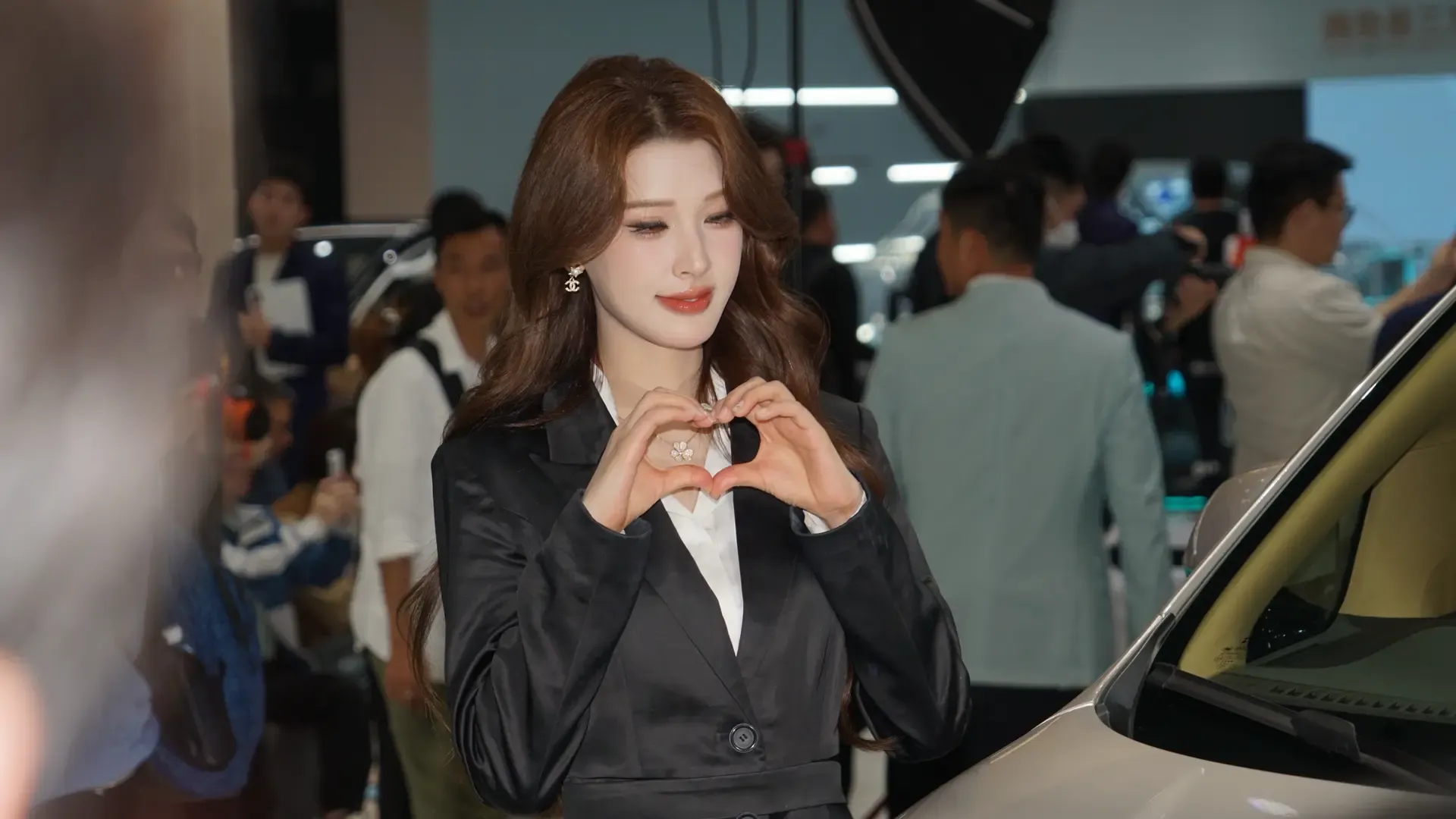 车展上,高颜值靓丽的美女车模美嘟。
