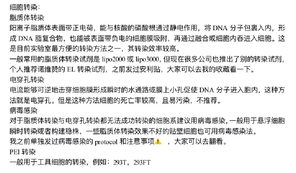 其实我用lipo现在已经不多了,因为我主要养悬浮细胞,经常做病毒感染。(之前分享过做病毒和感染细胞的方法要点,我在这方面还有那么一丝丝心得,可以去翻看。)