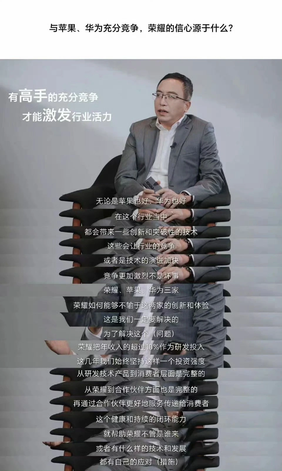 华为满血回归对谁影响最大?坦白说,我认为影响最大的还是荣耀。这两天在出差,同事说华为手机又热功耗又高溢价还高,但他依然买华为,指明就要华为芯片。而荣耀剥离于华为,客户群体一致,华为满血回归影响最大,不过荣耀CEO格局却挺大:华为若回归,最开心的荣耀。好的影响很大,因为市场竞争,而且这两年半荣耀也构筑了市场优势,从服务消费者到产品解决方案上,荣耀都有自信。在市场上两兄弟竞争得有声有势,那么才是对华为最大的尊敬。数码