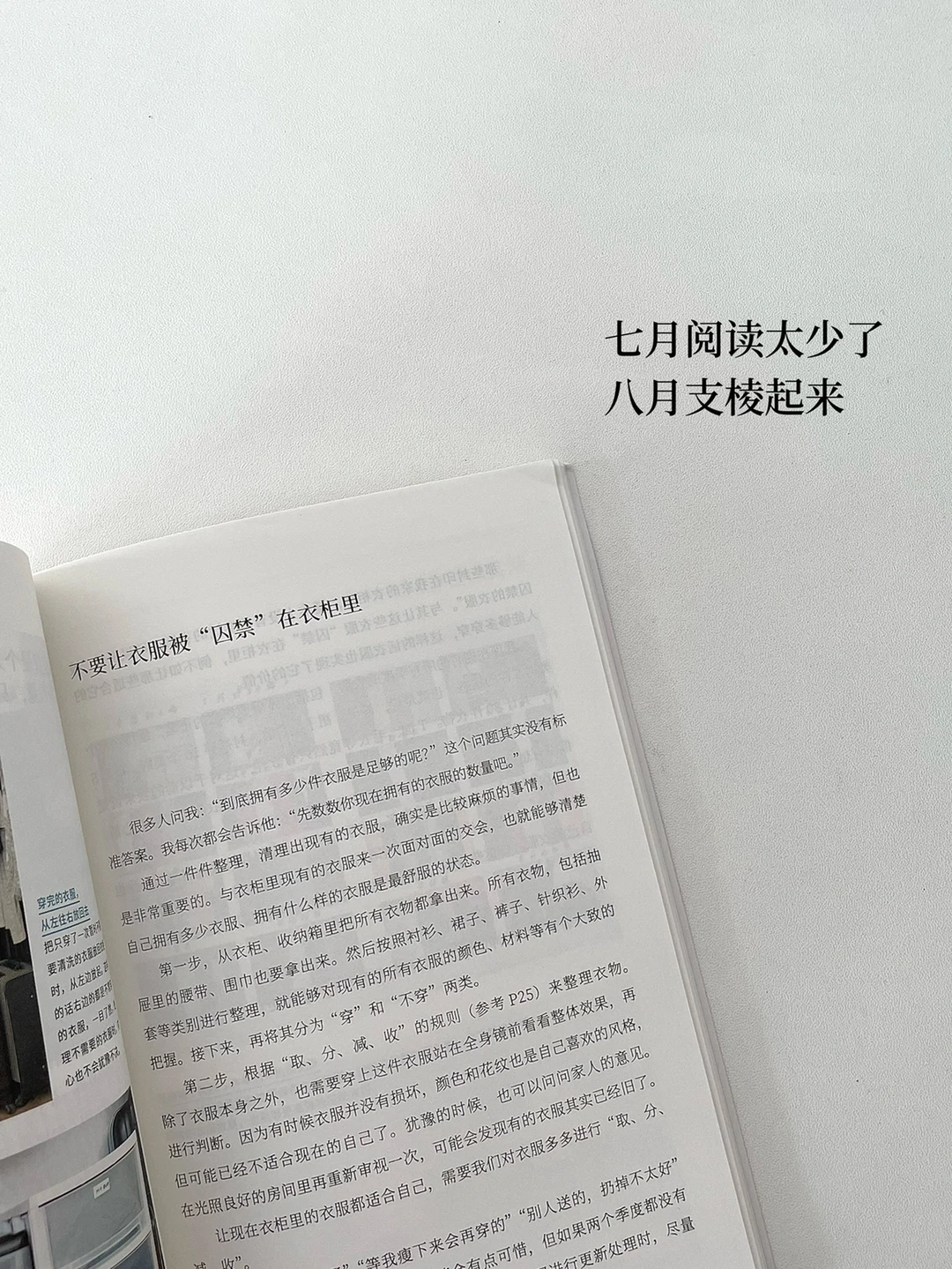 2022年还剩下五个月,都给我支棱起来。七月里,我断舍离了衣服、贴身衣物、书籍。八月,在人际、工作与生活中,还需要下功夫,好好断舍离,才能获得怦然心动的生活。