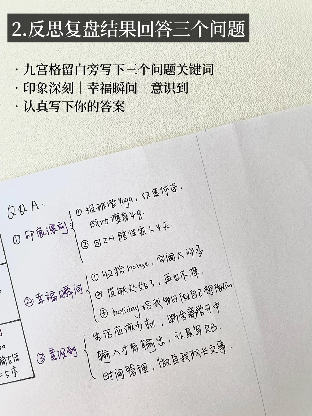 step3:回顾本月每个格子都做了哪些事,写下关键词。