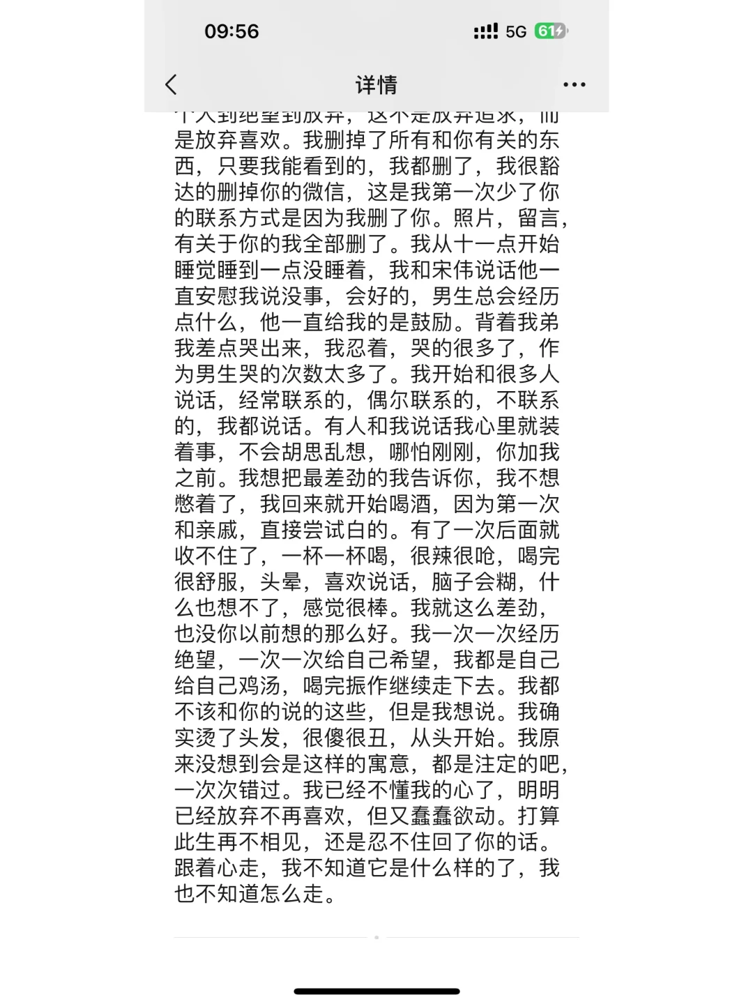 然后我大学的时候大三谈过一个男朋友,大四我考研他阻拦我,不想让我考我自己心仪的学校,非要让我留在我老家省份,我不愿意,一意孤行报了我想去的学校,然后他也把我甩了哈哈哈哈,我也记得当时正是考研最重要的时间段,一天天的边哭边做题哈哈哈当时我好惨,然后我考上研以后他又后悔了说还喜欢我,只不过我们回不去了,他还以为我是那个使劲挽留他的小丑吗?那次我都没给他眼神,甚至还想,我以前是脑子怎么抽的会看上他…