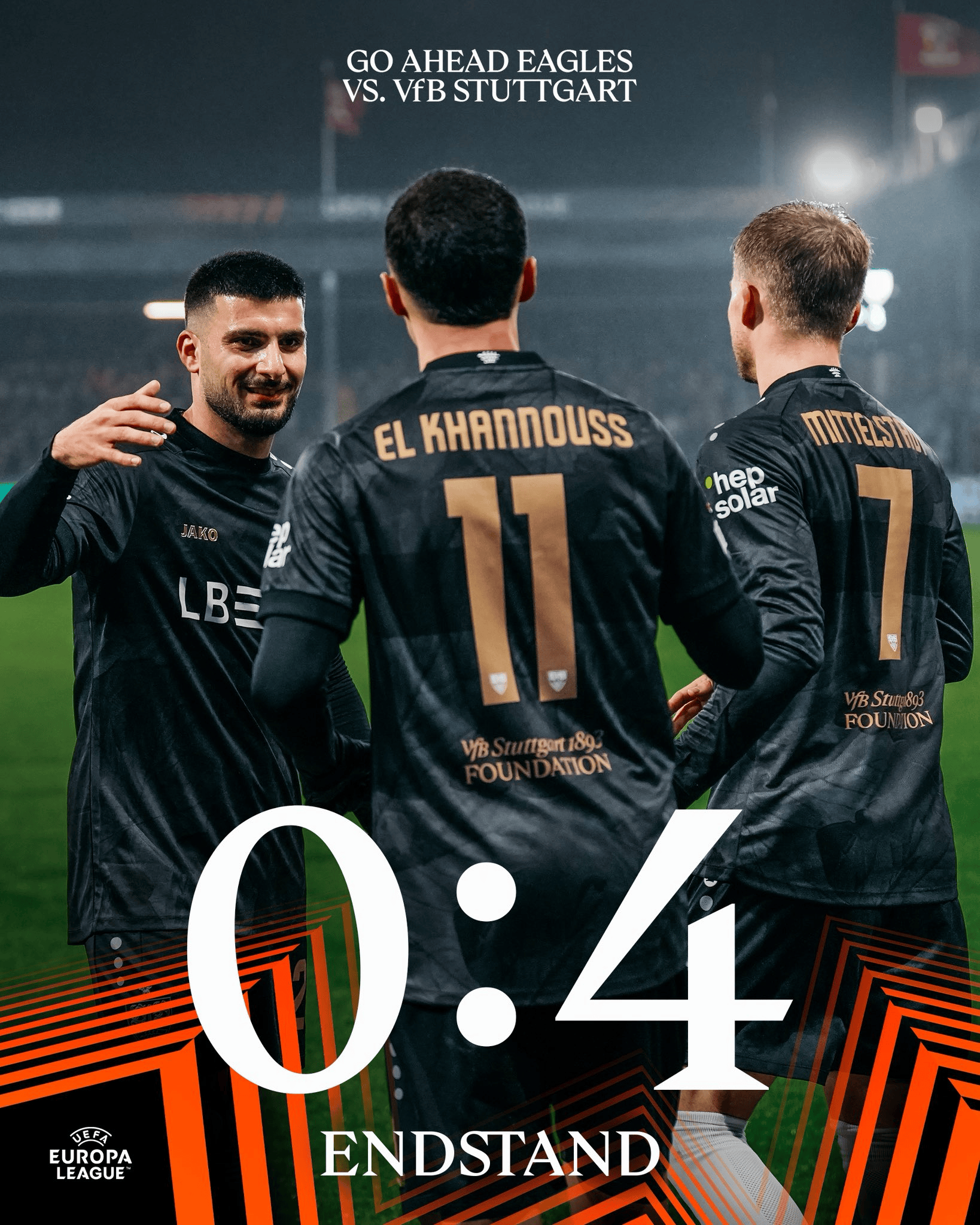 虎扑11月28日讯在今夜结束的欧联联赛阶段的比赛中,斯图加特在客场4-0轻取前进之鹰。