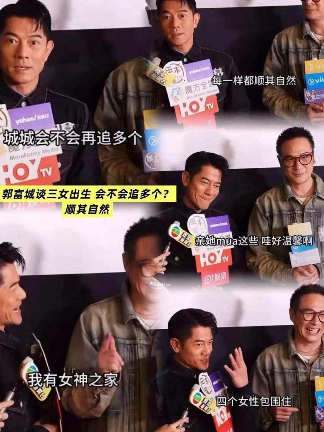 郭富城大概也没料到,在小女儿出生不久后,就被记者追问是否打算拼四胎。 这场景着实有趣,外人倒比天王本人更关心他的“生娃大计”。不过见惯大风大浪的郭富城回应得坦然:“顺其自然。”短短四个字,既没把话说死,又保留了足够的想象空间。看来,他对再添一位小宝贝并不排斥。 尽管郭富城已年届六十,但看看他演唱会上那活力满满的状态,连跳带唱两小时都不带喘的。这身体素质,要是真想再要个孩子,还真是完全有可能。 所以你说他会不会有第四个宝宝呢?感情的事、家庭的事,谁说得准呢?不如就像他说的那样——顺其自然吧。生活最美的,往往就是那些不期而遇的惊喜。