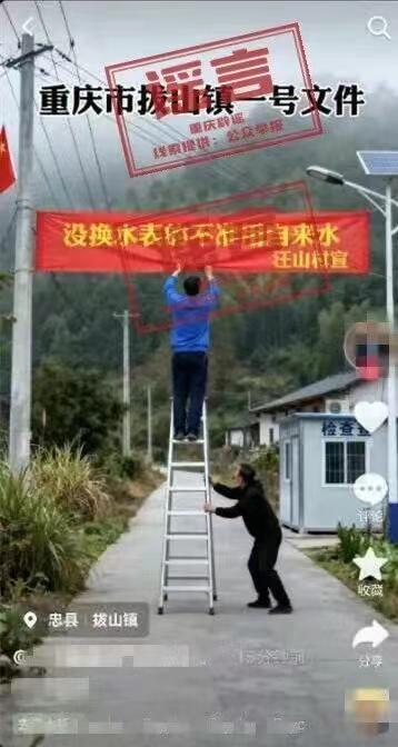11月24日,有网民在互联网平台发布信息称“重庆市拔山镇一号文件,没换水表的不准用自来水,汪山村宣”,引发关注。经核实,网传信息系谣言。