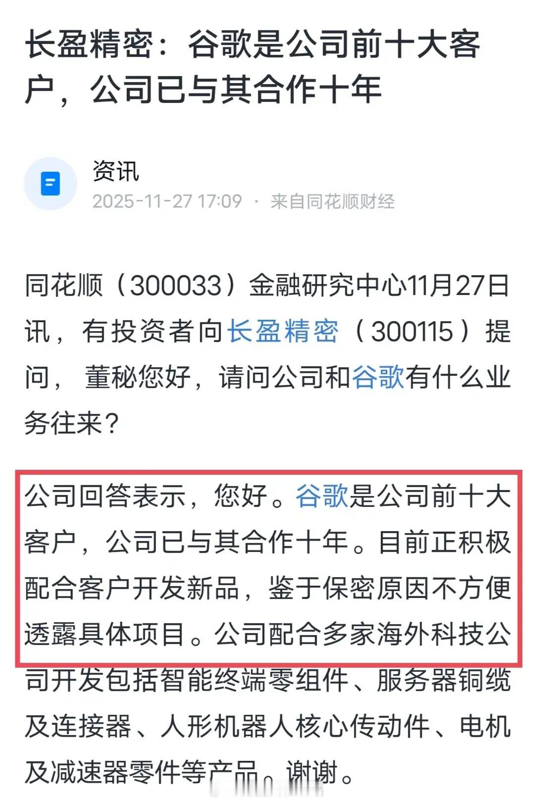 昨天盘后两个票长盈精密和东芯股份都发了利好,真是惊喜,因为不是预期之中的东西。长盈精密目前正积极配合谷歌开发新品,鉴于保密原因不方便透露具体项目。东芯股份小作文坐实,砺算科技(上海)有限公司签署了大额GPU芯片订单的相关市场传闻。可以说表达的很清楚了,大家也就理解了这两天为何这么强势的原因了,我还以为是为摩尔上市造势,主力故意为之的行为,没想到是这样劲爆的消息。
