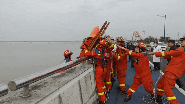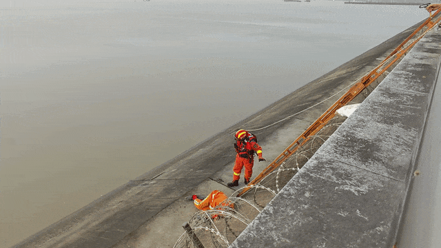 11月4日,一名男子深夜在钱塘江,爬梯下江捡潮头鱼的过程中,一时失足不慎从5米高的堤坝,坠落至下方平台,身体受伤无法动弹。