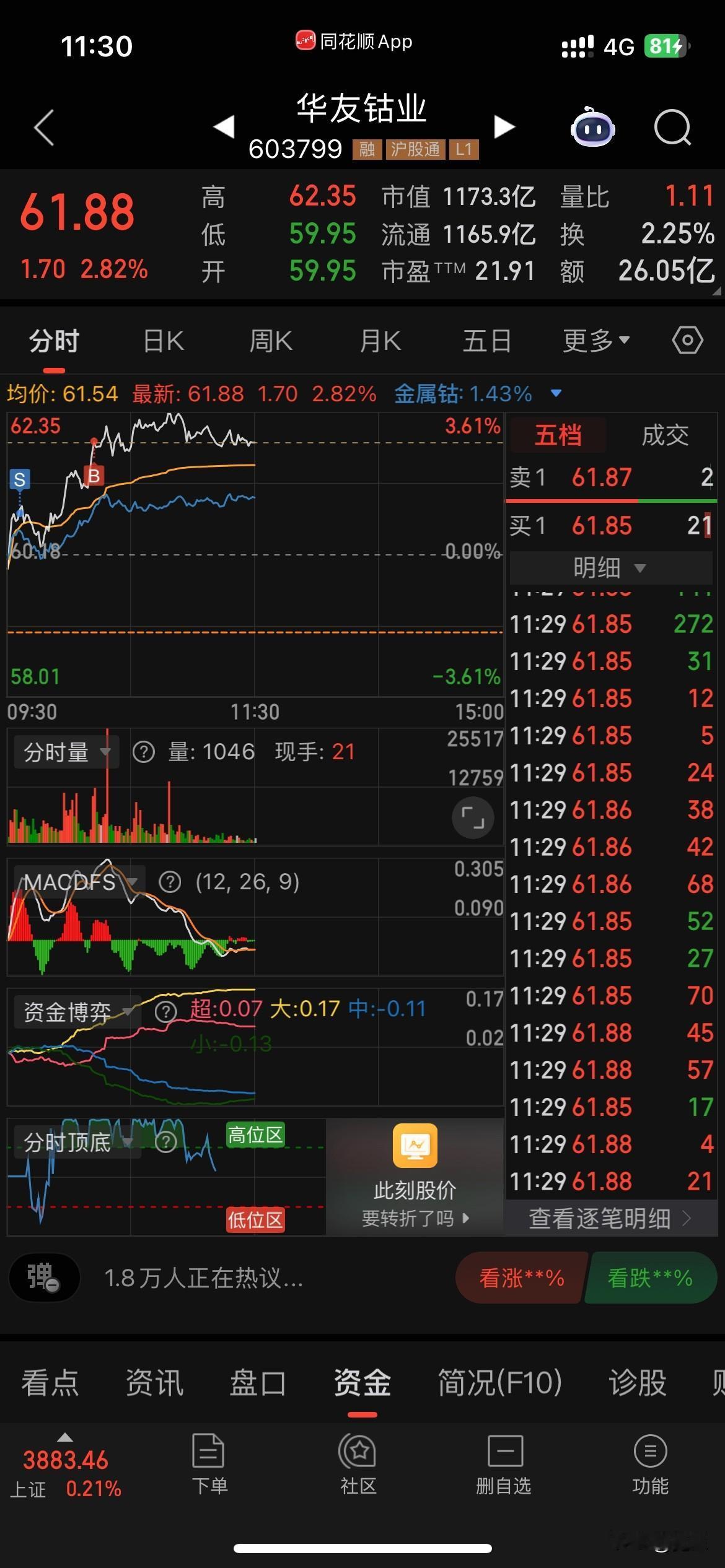 上午收盘了,早盘大盘蛮吓人的低冲,估计又又不少人割肉跑路了。也吓着我了,赶紧抛了