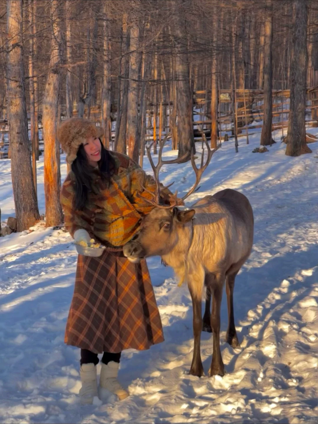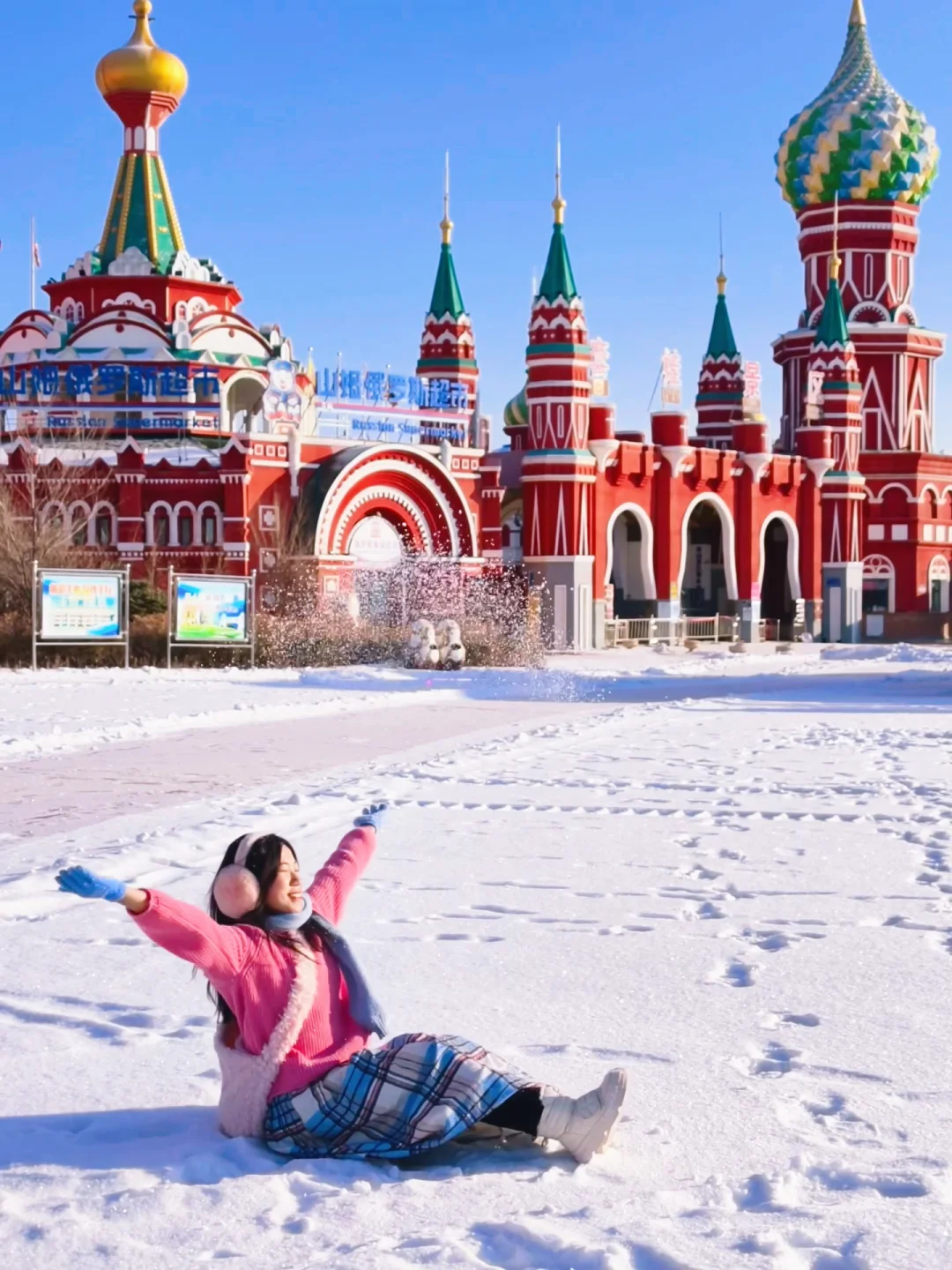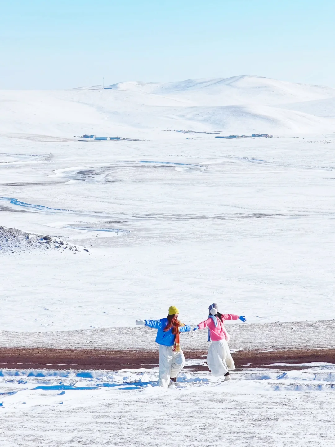 👗穿搭:上身加绒保暖内衣+毛衣+羽绒/厚外套/冲锋衣+围巾+帽子/耳暖+手套;下身保暖裤+加厚棉裤+裙子/裤子+厚袜子+雪地靴;衣服颜色越鲜艳,在雪地越出片