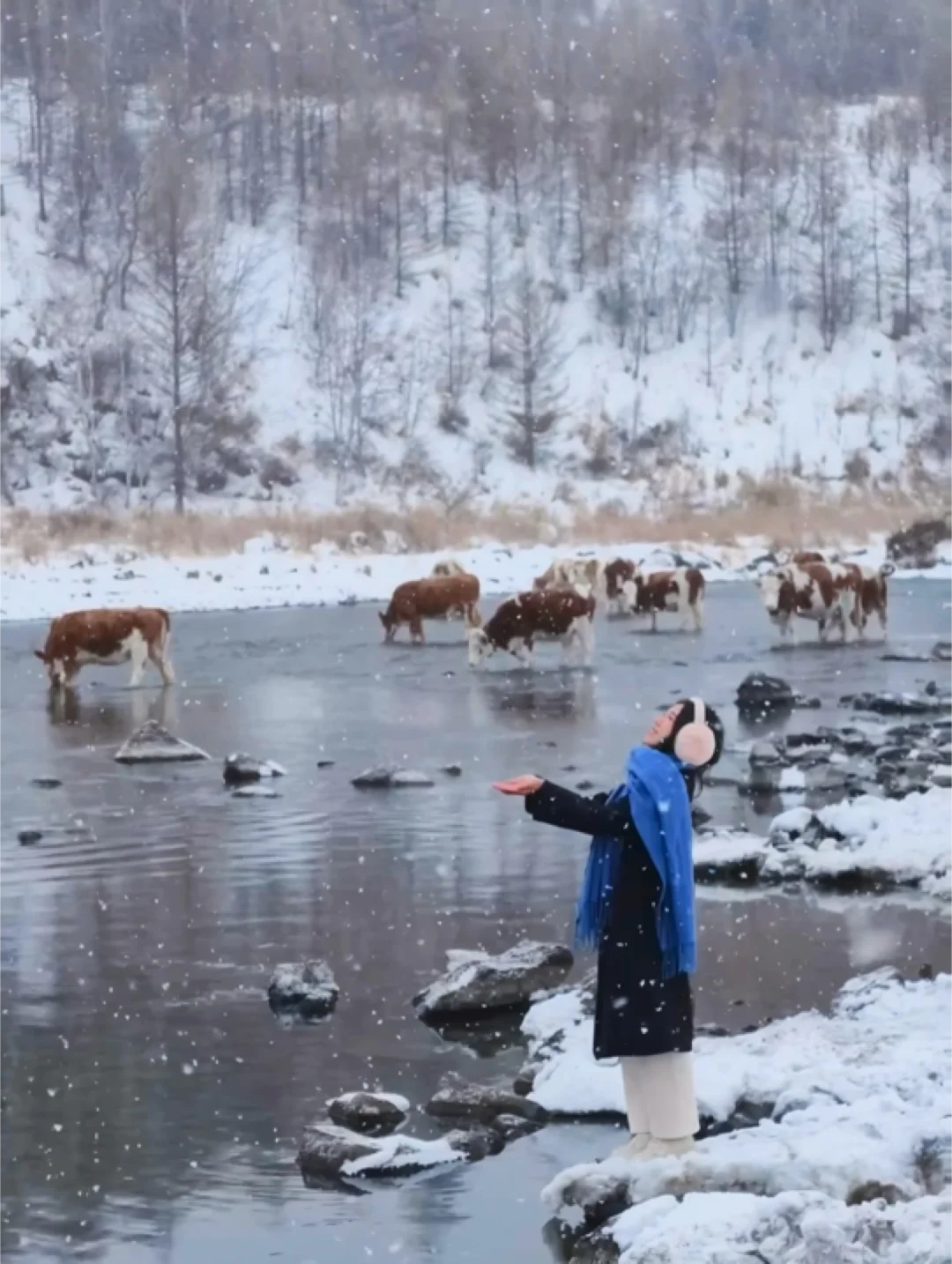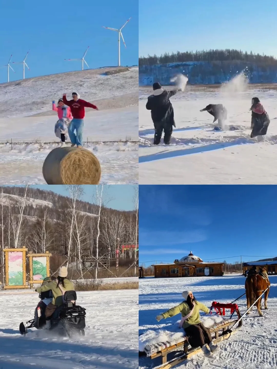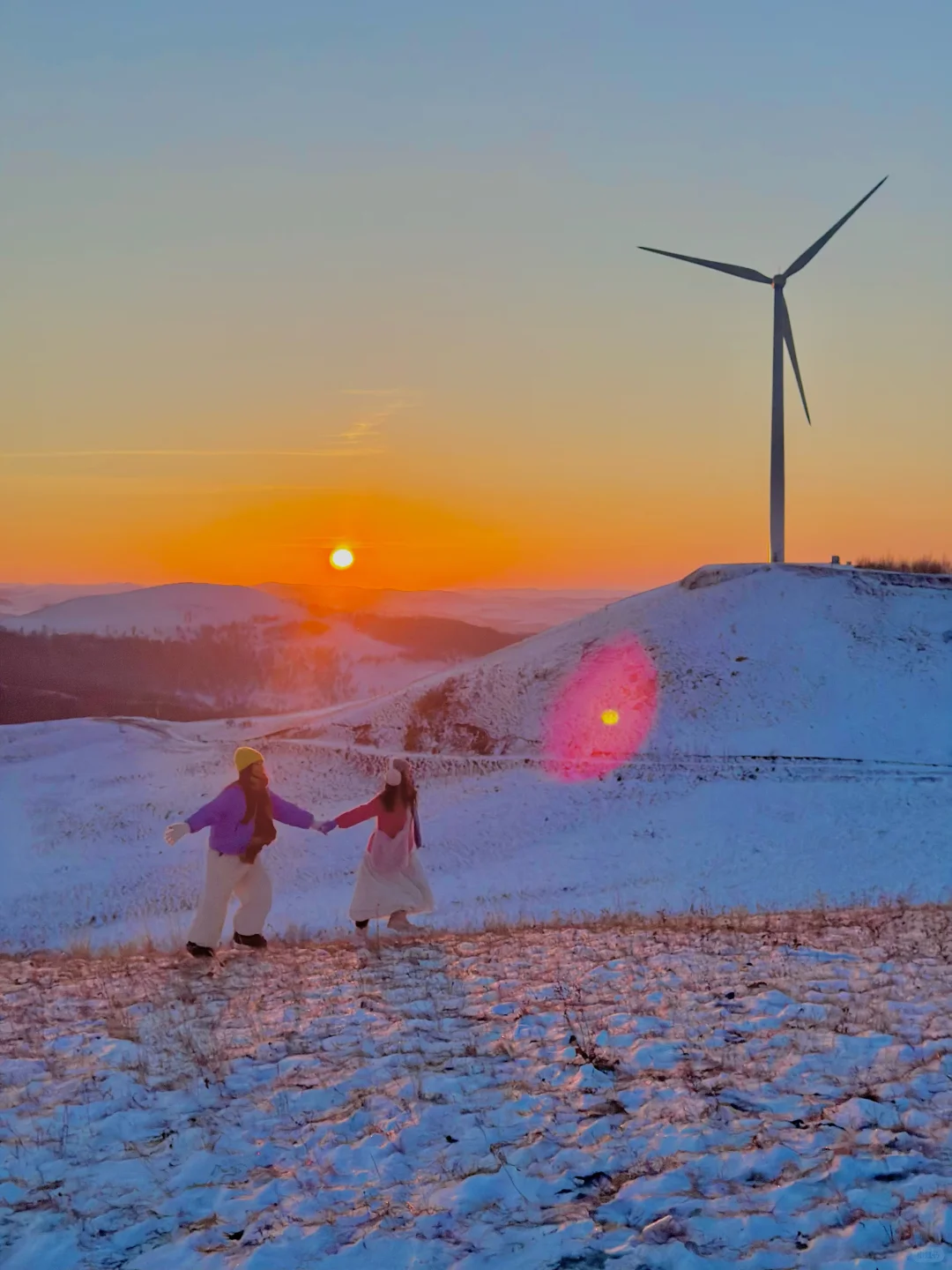 👗穿搭:上身加绒保暖内衣+毛衣+羽绒/厚外套/冲锋衣+围巾+帽子/耳暖+手套;下身保暖裤+加厚棉裤+裙子/裤子+厚袜子+雪地靴;衣服颜色越鲜艳,在雪地越出片