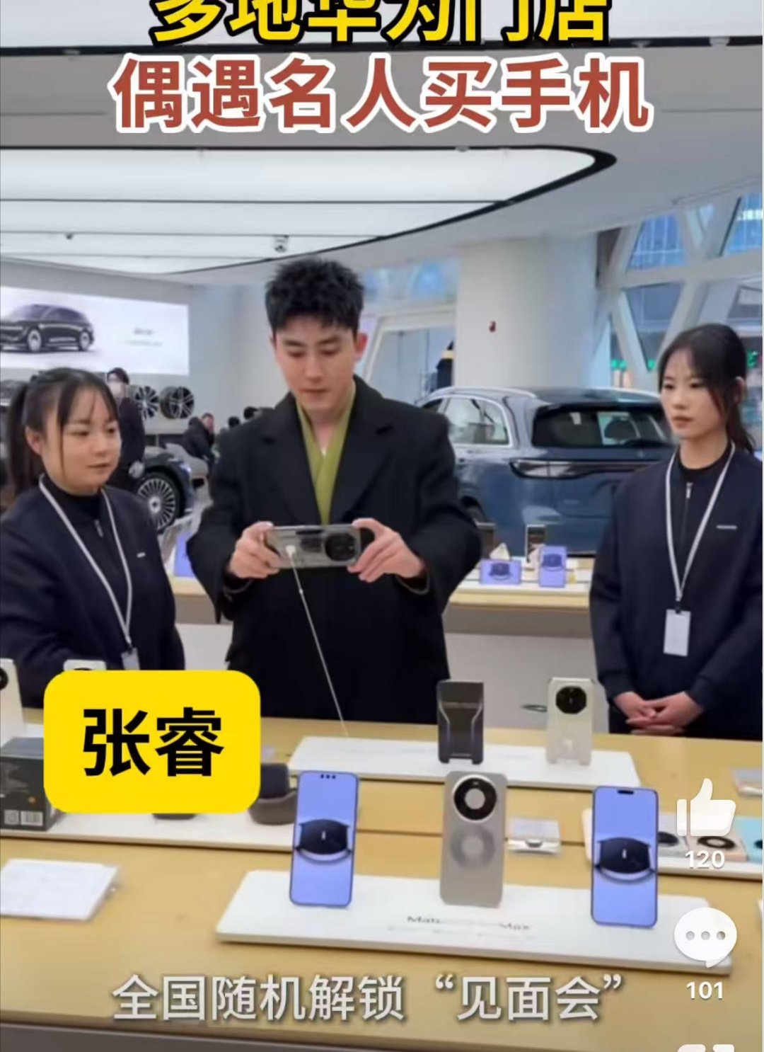 多地华为门店偶遇名人买手机 整的我都有点好奇了,名人买的这款手机是什么样的,肯定