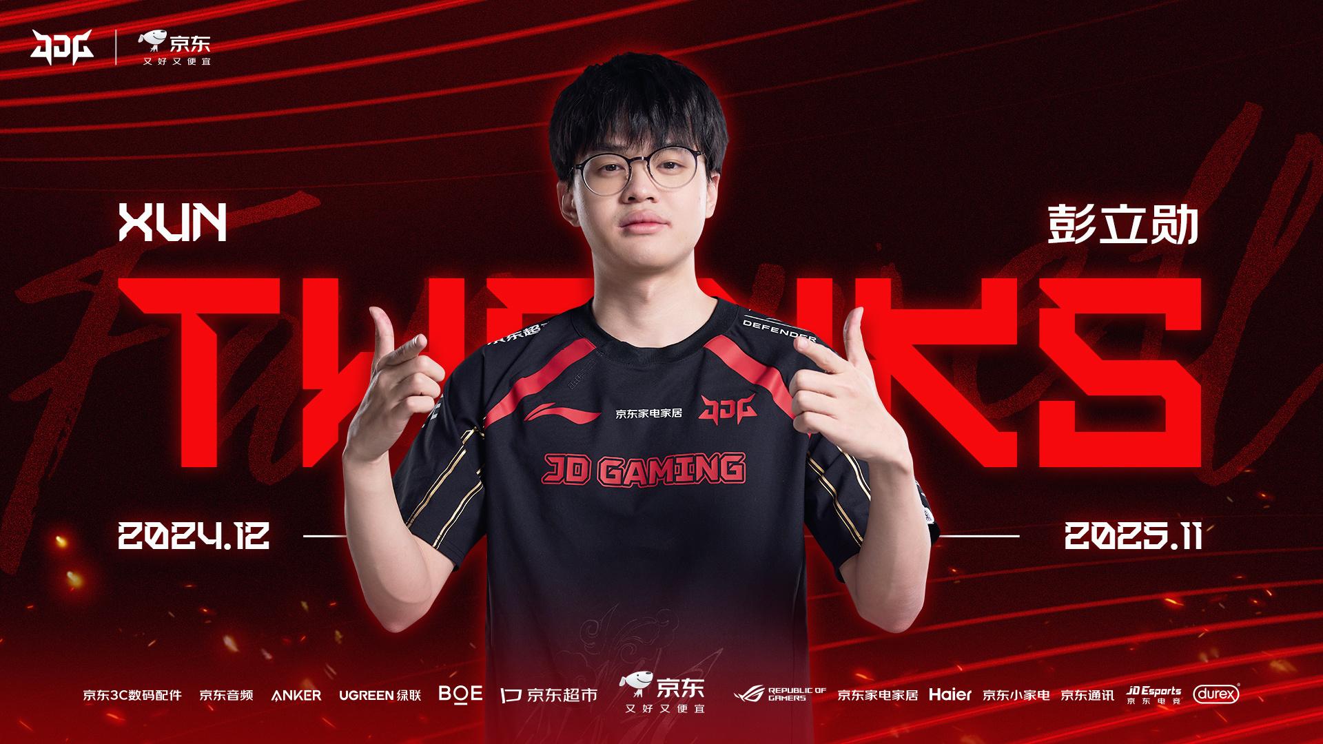 经选手与俱乐部双方友好协商,在充分尊重选手个人意愿的前提下,即日起JDG京东电子竞技俱乐部打野选手彭立勋(ID:Xun)正式断开连接。