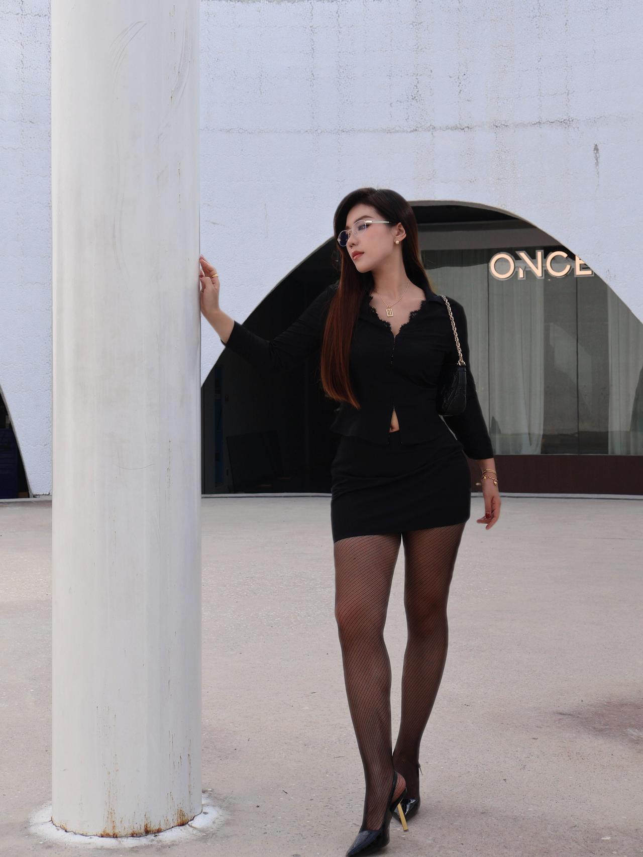OOTD|御姐风黑系穿搭,把成熟性感焊在身上 今天的穿搭主打一个御姐气场全开! 一件黑色蕾丝领口衬衫,把精致感拉满,纽扣设计若隐若现的小性感谁懂啊~搭配同色系短裤,利落又显腿长。 重点来了!细条纹黑丝+黑色尖头金跟高跟鞋,这组合直接把腿部线条“焊”得又长又绝,走路都带风~ 再用金色项链、耳环、手镯点缀,拎上黑色链条包,从细节里透出的精致感,让整个造型既有御姐的成熟,又有时尚的腔调~ 在工业风的水泥台阶背景下,这套黑系穿搭真的太出片了,姐妹们御姐风可以大胆冲,分分钟slay全场! ootd每日穿搭 御姐风穿搭 黑色系穿搭