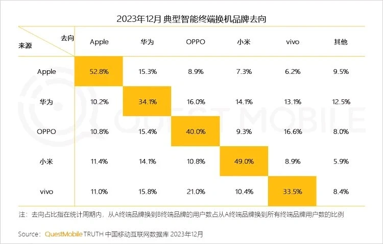 手机品牌忠诚度,苹果第一,小米第二