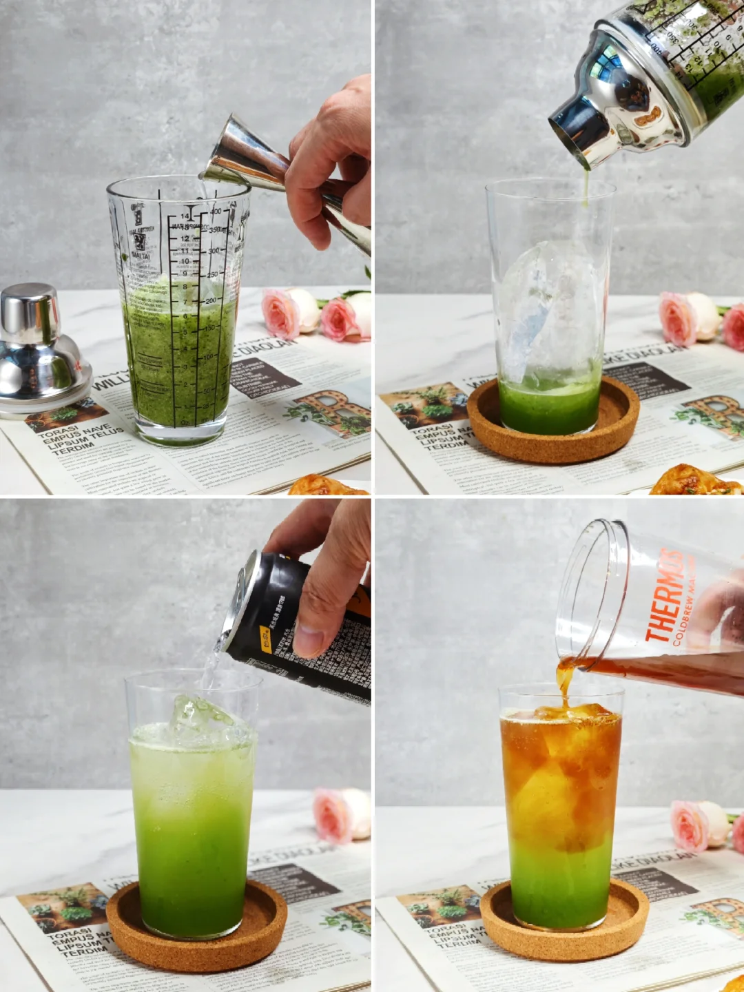3⃣️缓慢倒入杯中,再倒入气泡水7分满