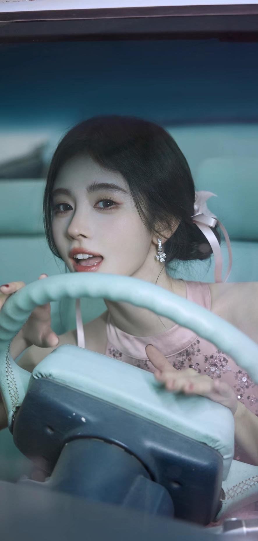 阳光洒在窗台,少女轻抚耳畔,城市绿意盎然。