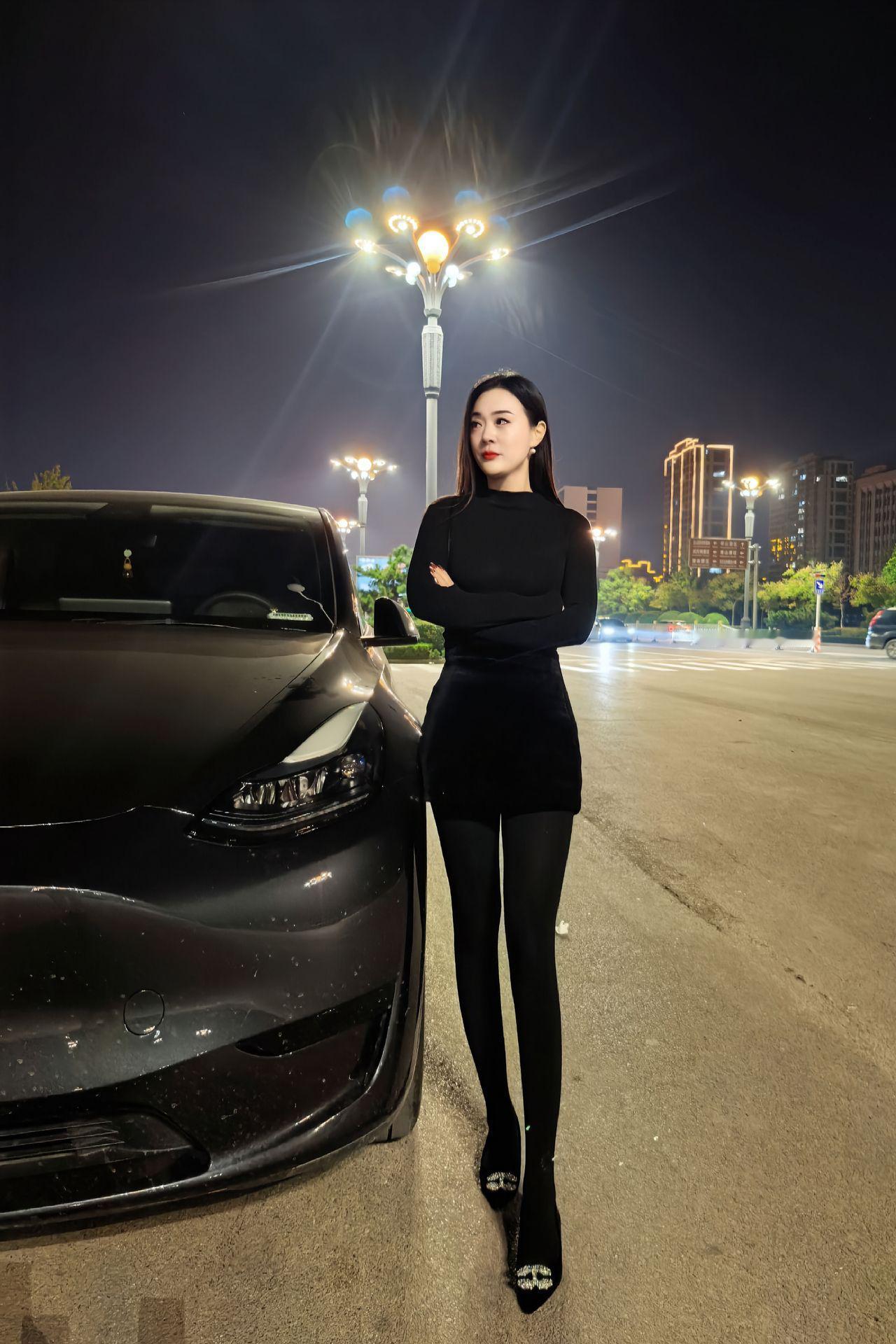 夜晚街头的时尚女郎与酷炫跑车,尽显都市魅力!