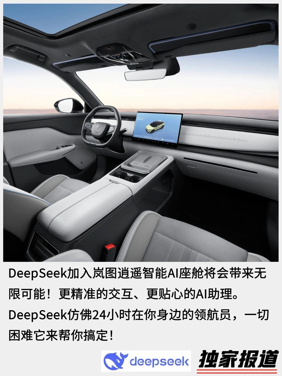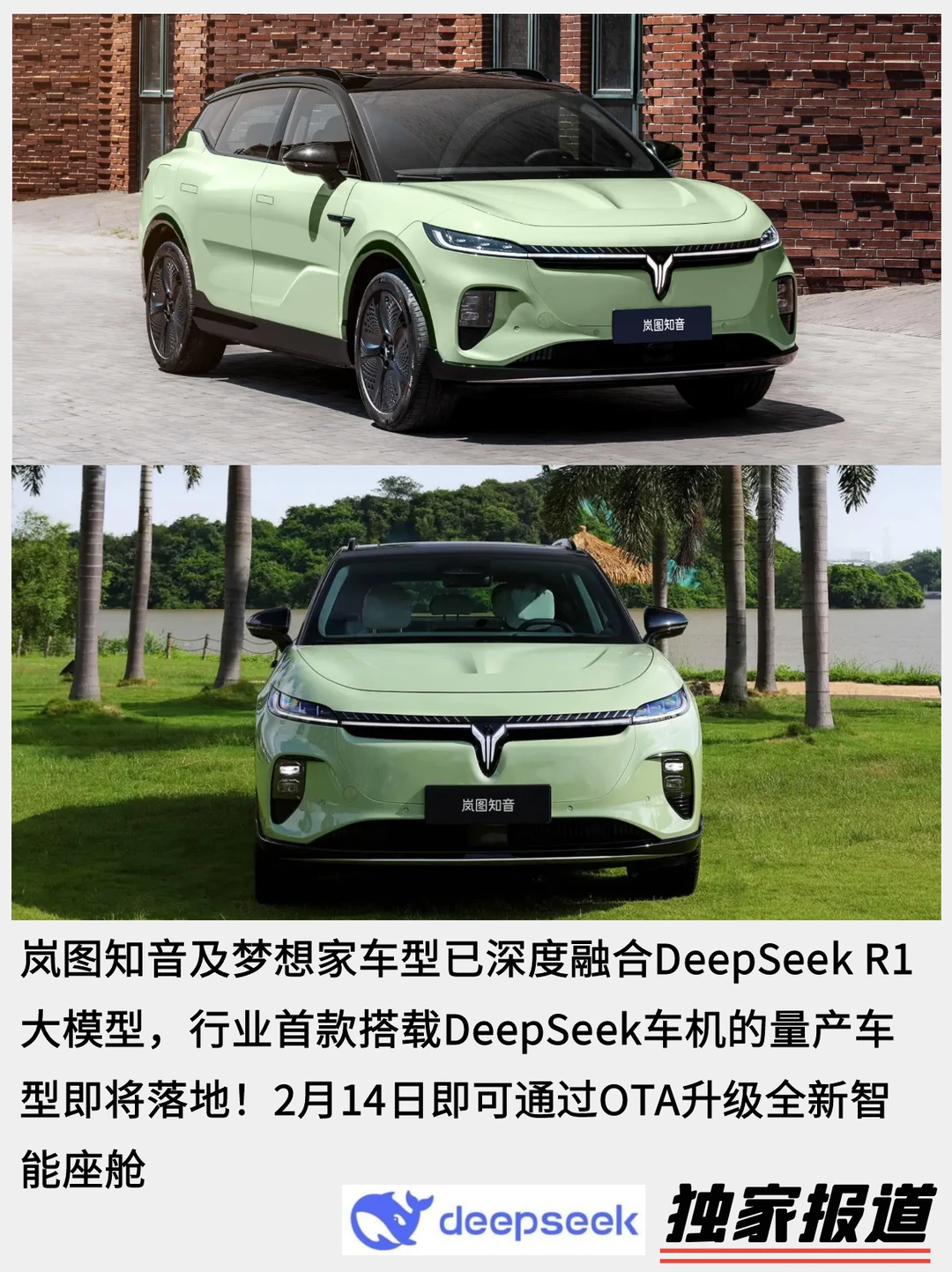 1⃣你没听错‼️根据岚图汽车官方消息,岚图2月7日已完成与DeepSeek模型的深度融合✅,岚图知音将成为首个融合DeepSeek的量产车型👍