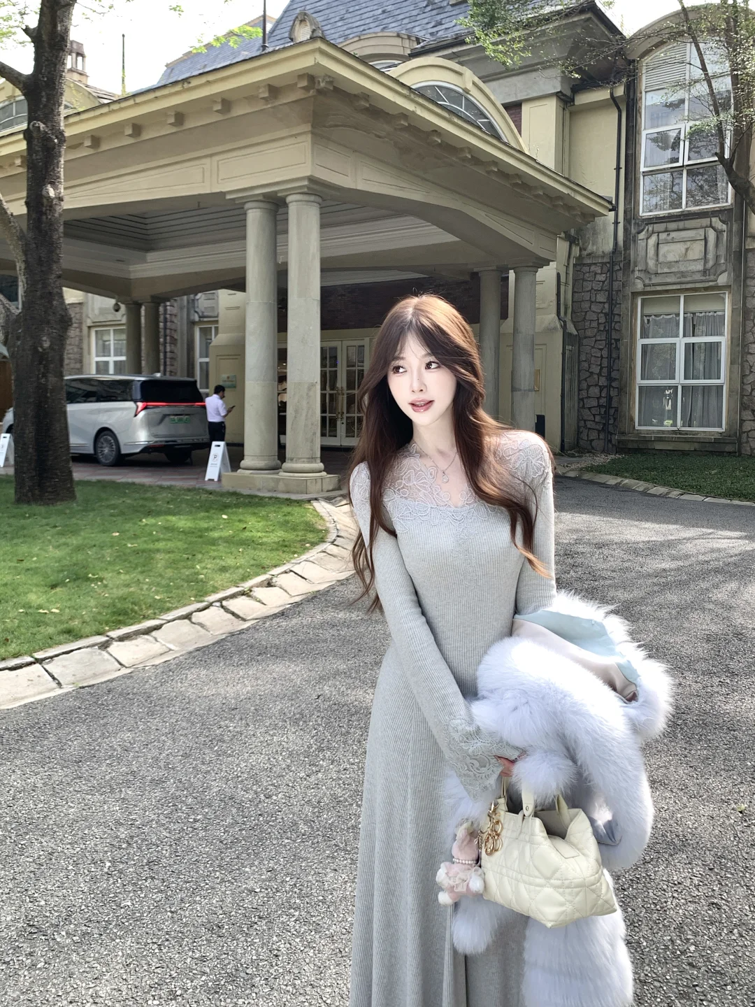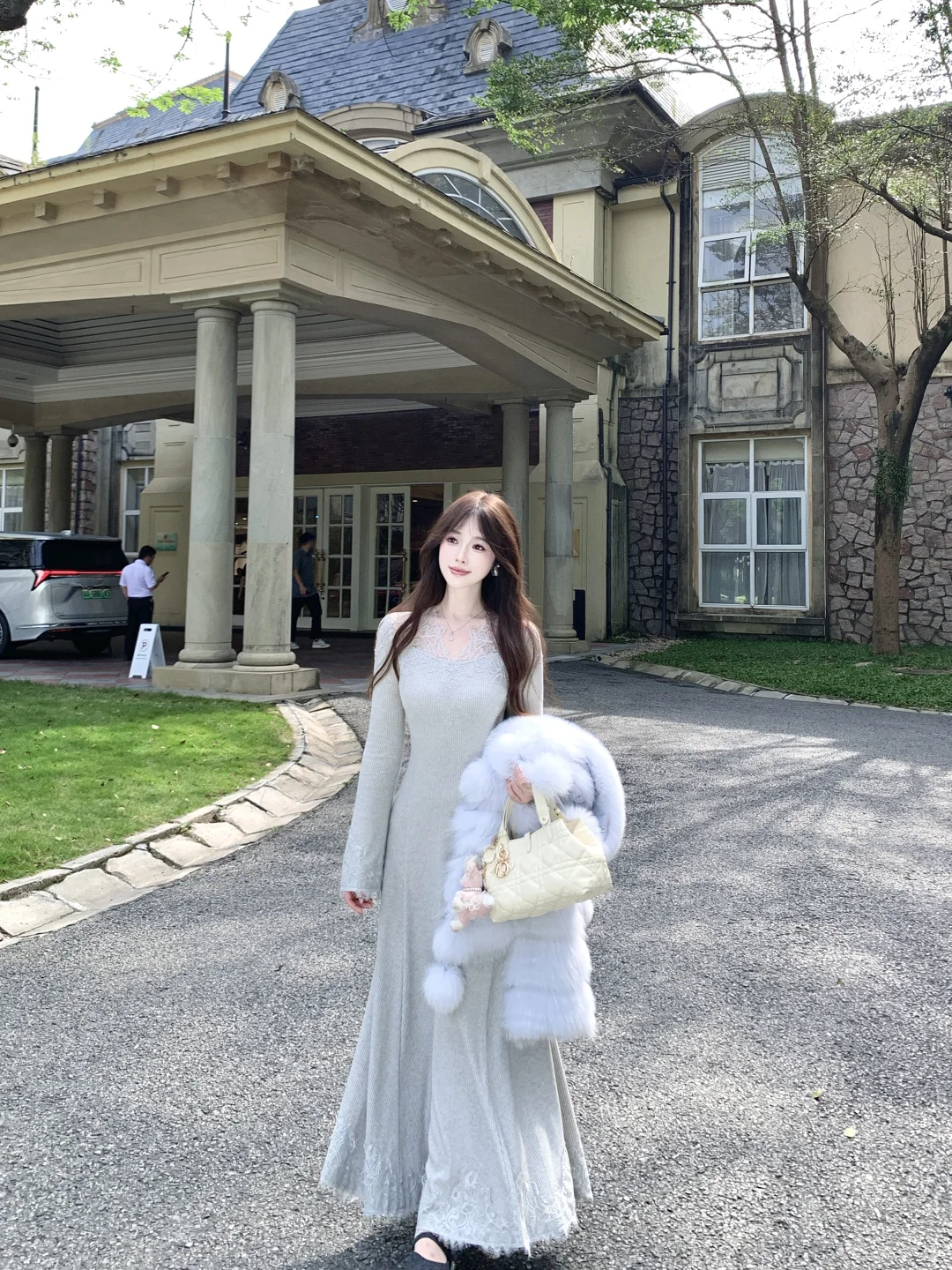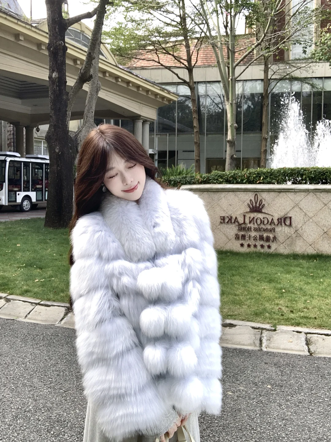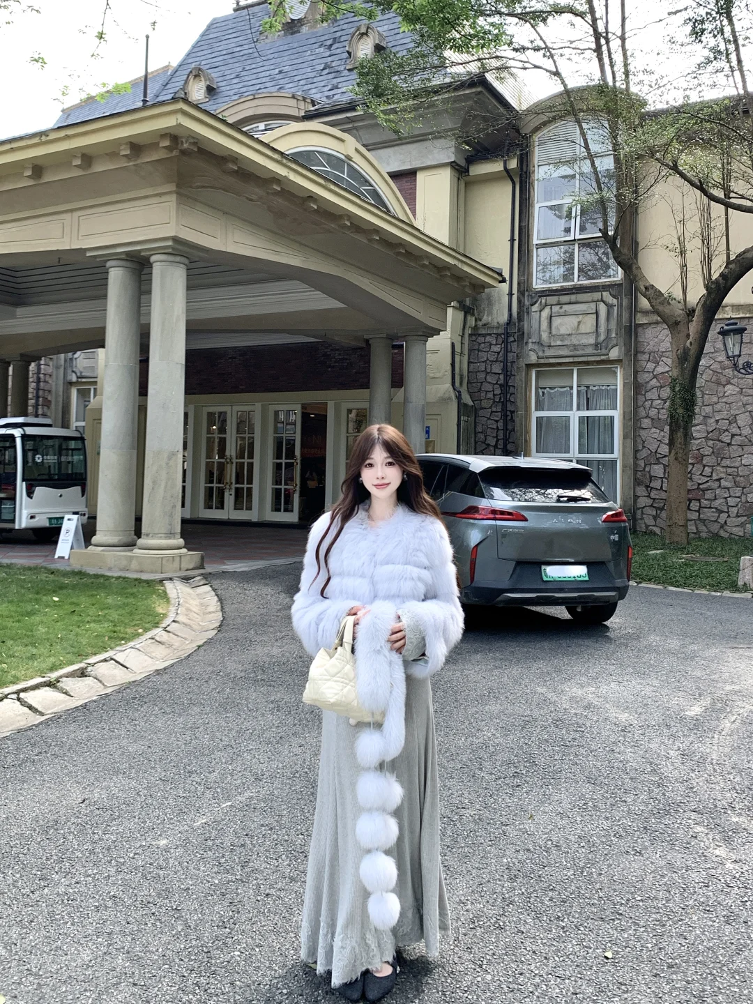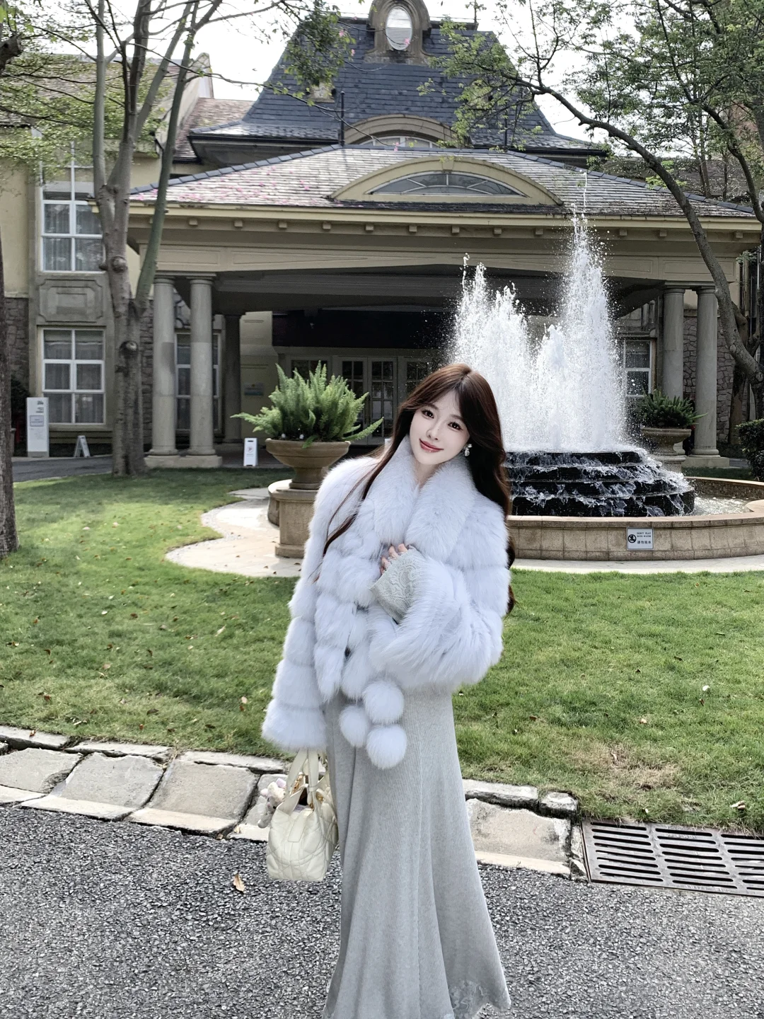 蓝色系 清冷感搭配 狐狸毛皮草 氛围感神仙小裙子