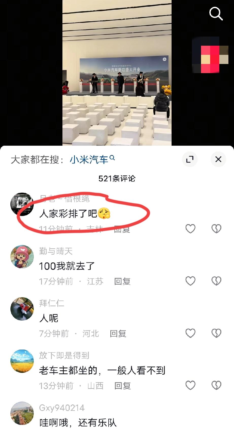 河北邯郸,小米汽车现代汽车城交付中心盛大开业。台上歌手在卖力的演唱,可貌似到场的嘉宾不是很多啊? 评论区网友表示:有没有可能人家在彩排啊?按理来说,以小米的销量和交付量,以及小米的粉丝基础,到场嘉宾不可能这么少啊? 近段时间,小米汽车在加紧推进各地交付中心的建设,可以预见的是,要不了多久,接下去全国每个地级市甚至很多县级市,都会有小米汽车的交付中心,到时小米车主们提车就方便多了!