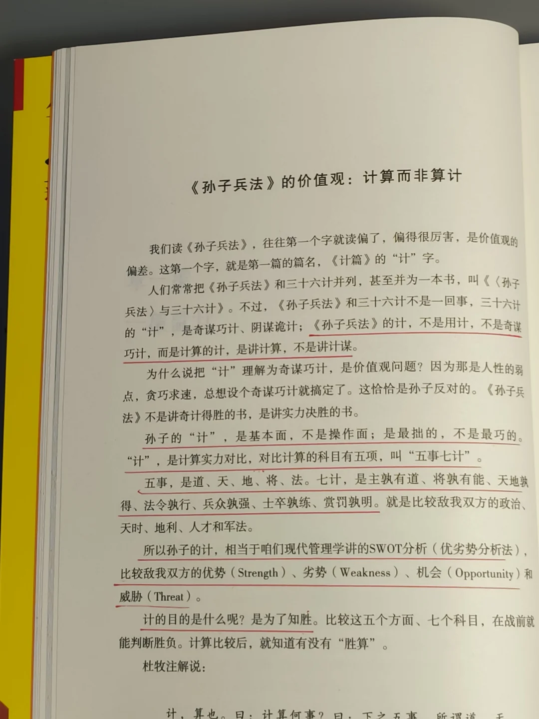 而《华杉讲透孙子兵法》让我更加明白了孙子兵法的核心思想就是,‘求全’,先保全自己,讲究不败;如何让自己变强大,立于不败之地。
