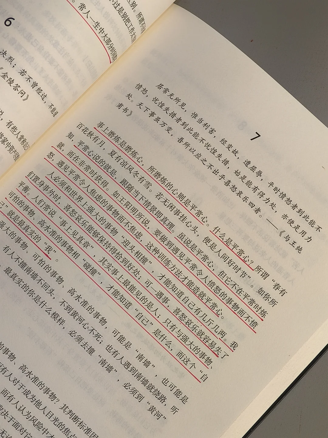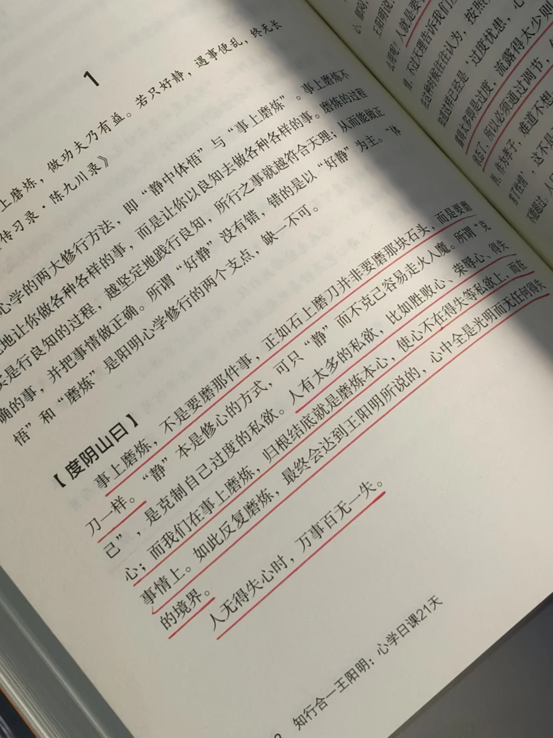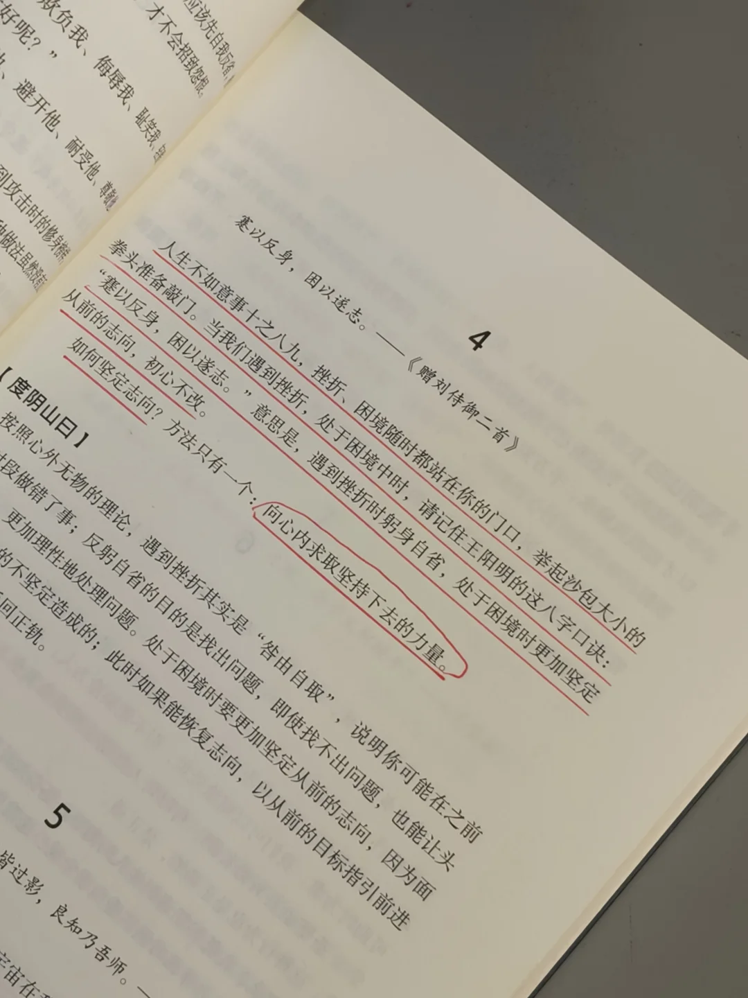 阳明心学蕞能帮助我的点是,让我明白修炼应该是“向内求”,相信自己、不断完善自己。以前太过于依赖外物,很容易失望和迷惘。引起不安的不是事物本身,而是我们对事物的想象,一切情绪来源都是你的内心。如果此刻的你正陷入莫名的情绪困扰,一定要读读这本书,那些不安,焦虑,迷茫,自卑,都会在这本书里找到出路。你会真正变得理性和强大起来!