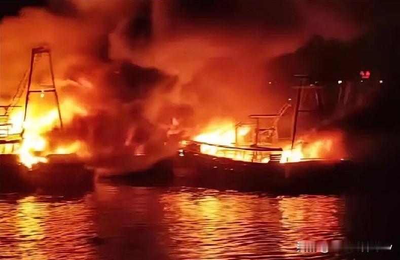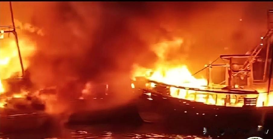 广西侨港深夜火光冲天,万幸无人员伤亡!2025年11月27日21时40分,边贸码头1艘渔船突然起火,“柴油助燃下爆炸声不断,火舌瞬间窜上桅杆”,海风助推中8艘渔船接连被吞,300米外都能看到滚滚浓烟。 渔民们站在岸边急红了眼,“船是全家的生计根本”,有的刚结束远洋作业归来,有的承载着几代人的出海记忆,这场大火让几十个家庭的心血付诸一炬。 半年前的5月6日,侨港电建码头也曾发生类似悲剧,1艘渔船起火蔓延至5艘,当时政府就通报要加强安全监管,如今同类事故再发引人深思。 应急、消防、公安等多部门连夜驰援,历经近4小时扑救,至28日1时20分终于扑灭明火。渔民风里来浪里去讨生活,渔港安全从来容不得半点松懈。 你觉得该如何避免渔船“火烧连营”?对于渔港安全监管,你有哪些实在的建议?