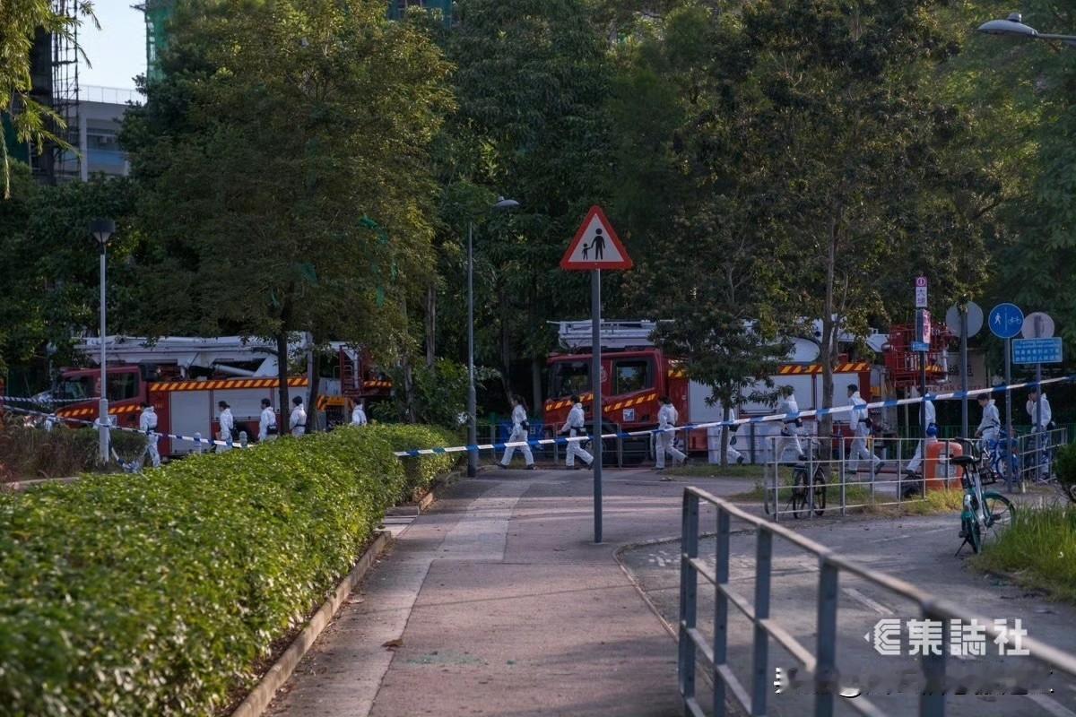 今天上午,身穿白色保护衣的灾难遇害者辨认组到场搜证。 灾难遇害者辨认组是因应1972年香港发生的宝珊道、鸡寮,两宗山泥倾泻而生,专责处理死难者遗体及财物,以至确认他们的身份。 该部门曾参与1996年佐敦嘉利大厦夺命火、 2003年屯门公路巴士堕桥,以及2012年的南丫海难工作;最近一次出动,已是2018年,大埔公路巴士翻车酿成18死的意外。