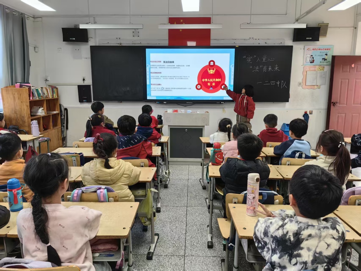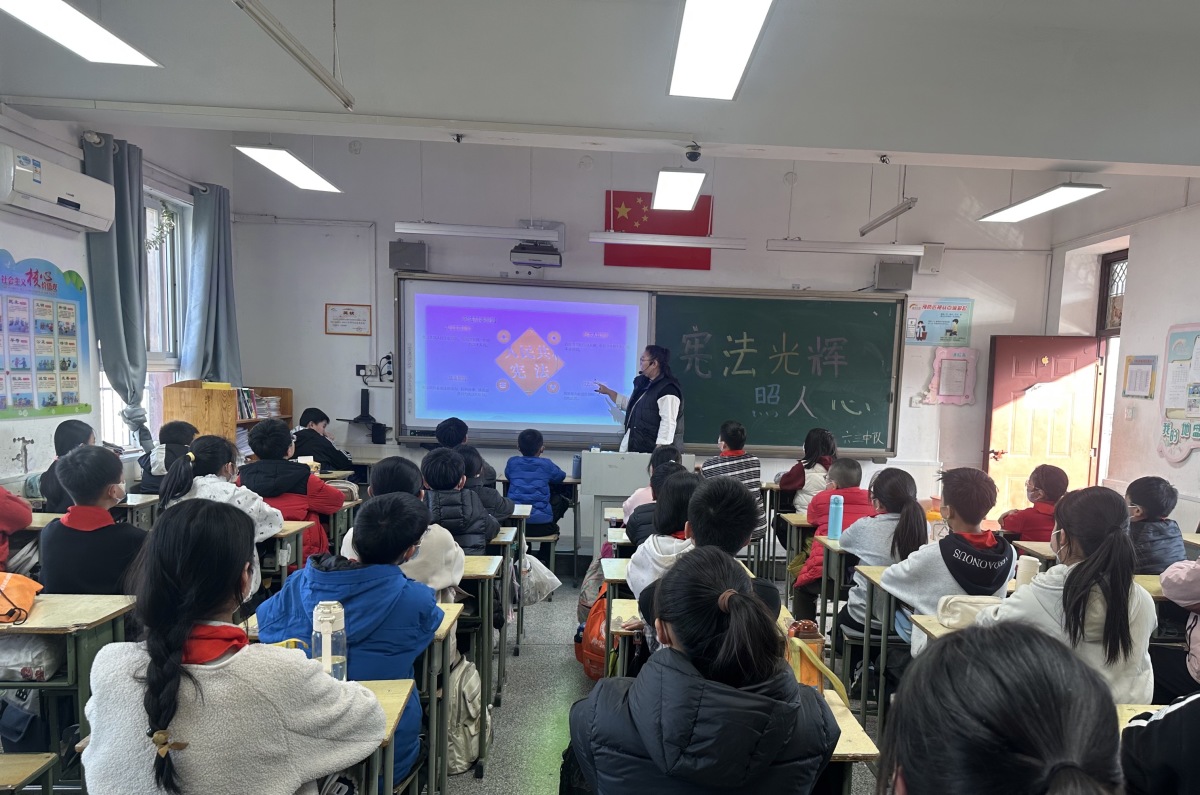 悠悠岁月中,法律如一曲长河,贯穿古今,波澜不惊,法治建设更是日新月异,与时代并进。在第十二个国家宪法日来临之际,为弘扬法律精神,普及法律知识,增强全体少先队员的法律意识,提高队员们对国家、民族、社会的责任感,使学生懂得遵纪守法、崇尚科学,学会自立自强,提高学生的安全意识和自我保护意识,郑州市管城回族区逸夫小学于11月28日开展了“宪法在我心中”宪法日主题教育活动。