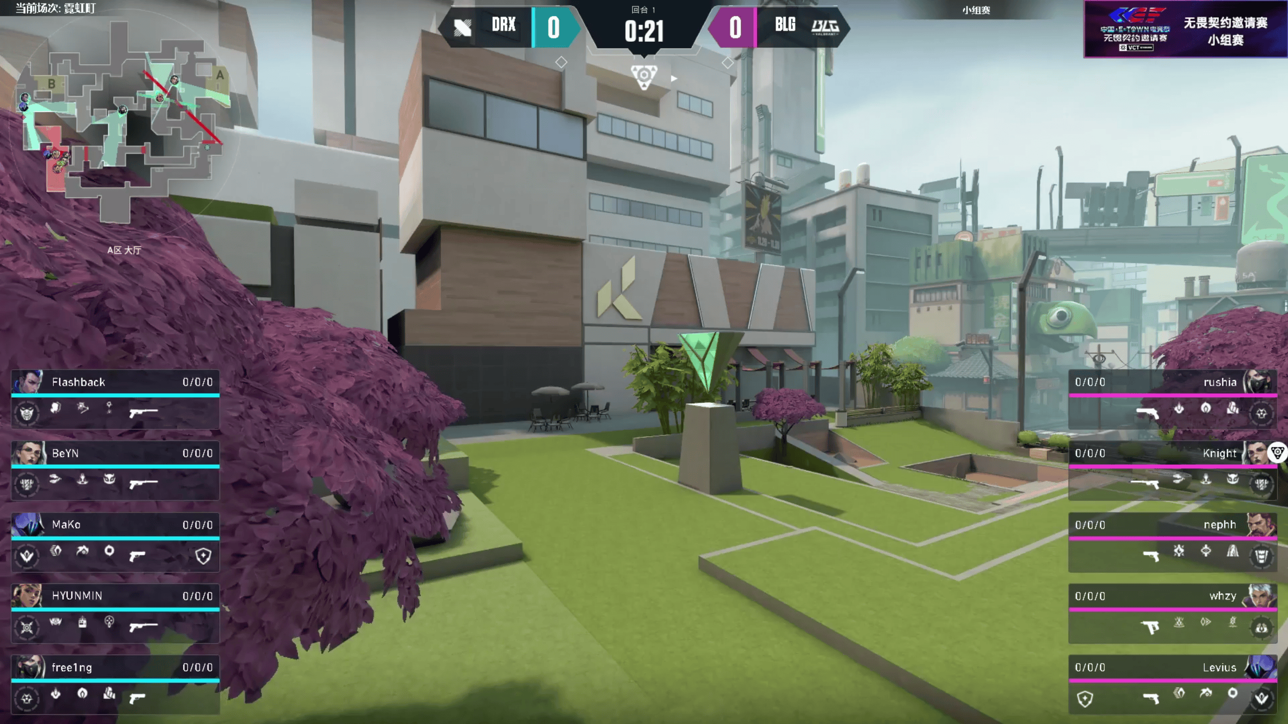 第二回合:完美开局,rushia出烟拿下两个侧身,铁板对枪拿下三杀