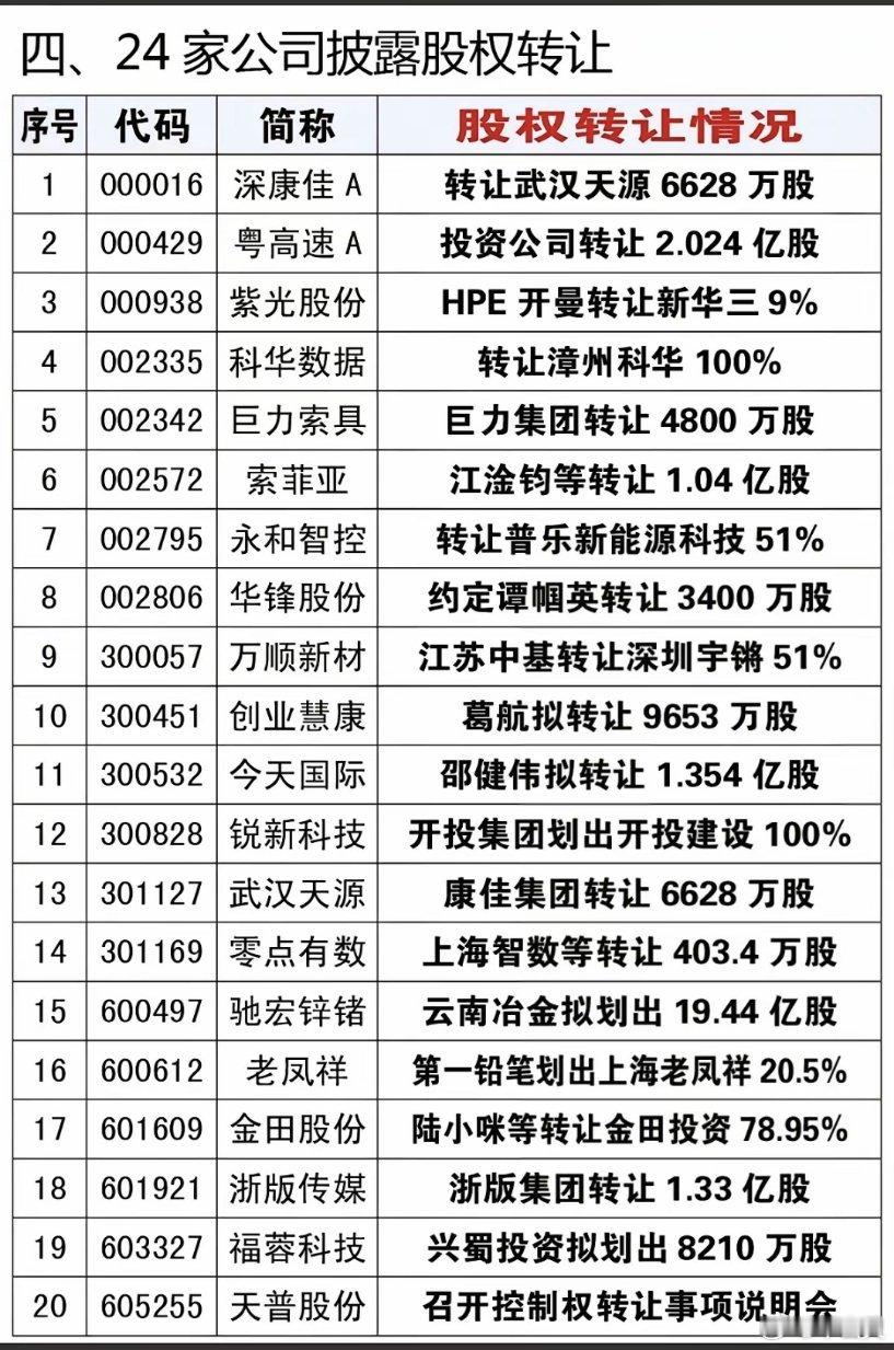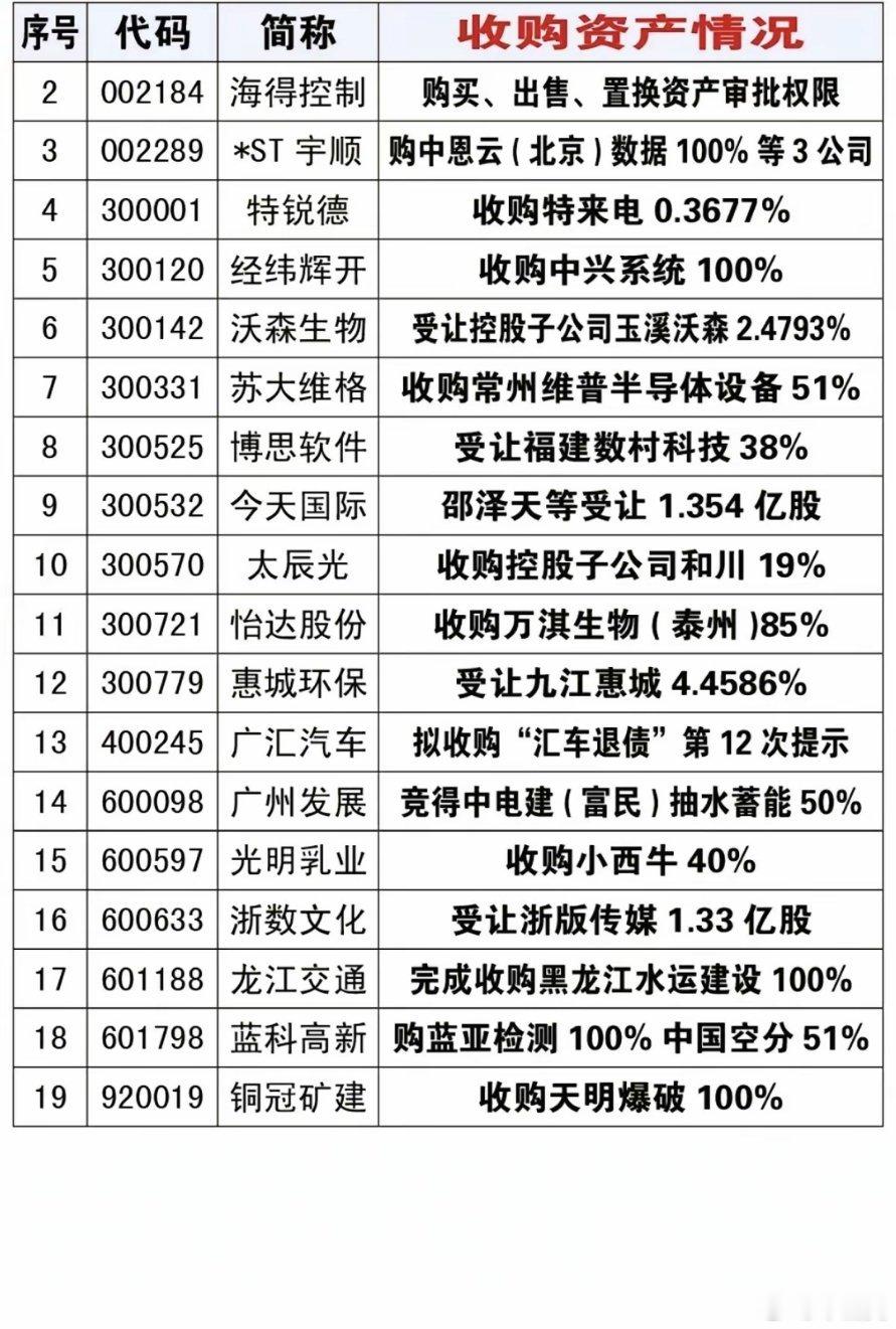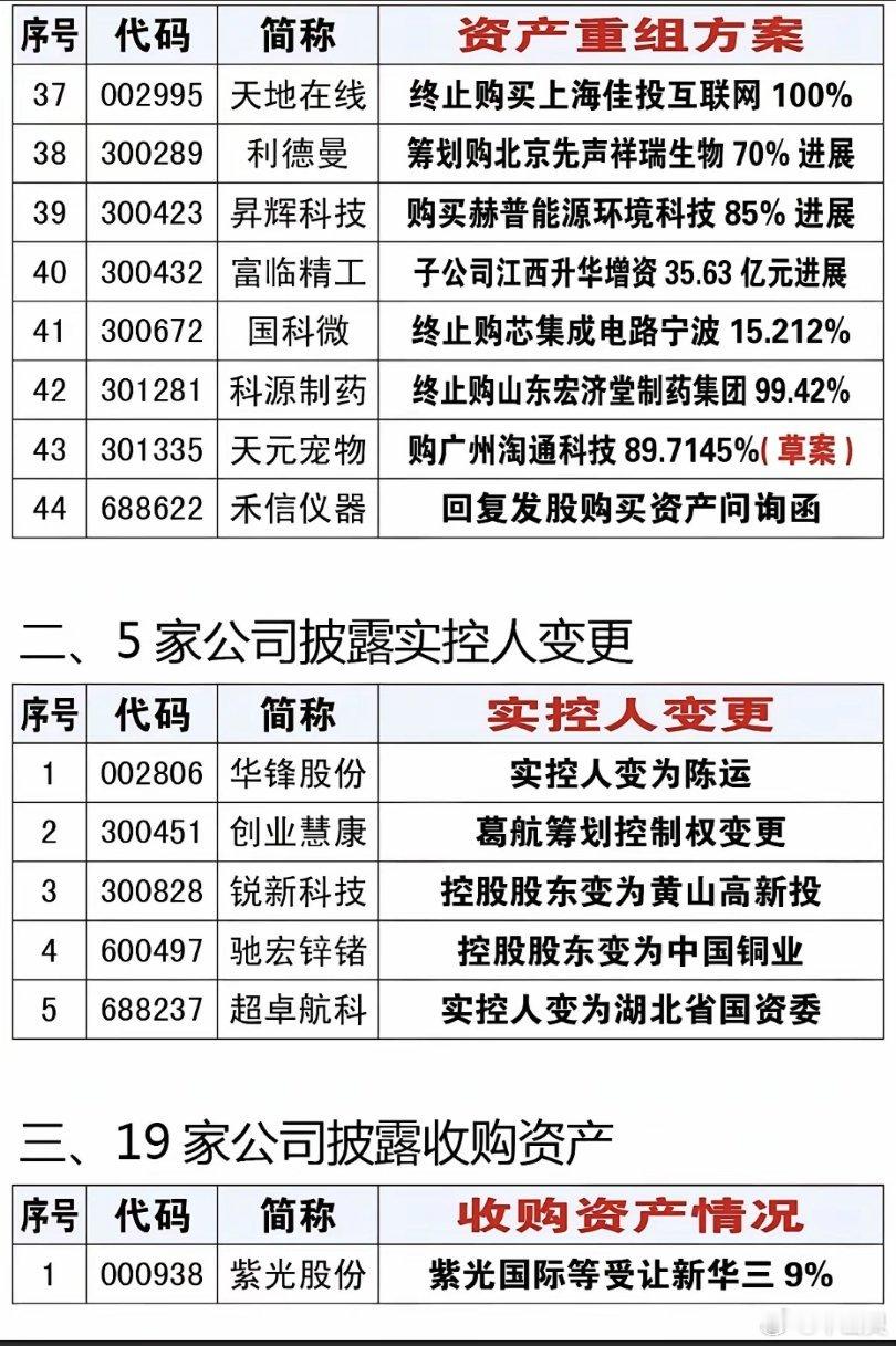 11.29周六 最新:资产重组、实控变更、股权转让公告!44家公司披露资产重组,5家公司披露实控人变更,19家公告收购资产24家披露股权转让,5家公告出售资产