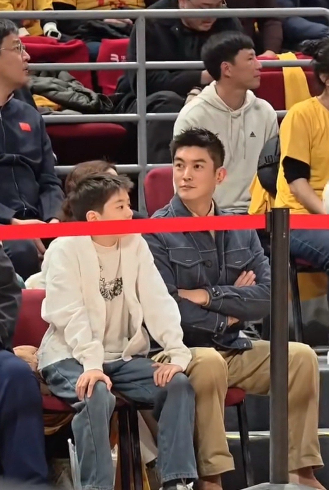 12岁嗯哼长大变帅了 杜江带12岁嗯哼看篮球赛,从前软萌小可爱长成并肩爸爸的帅气
