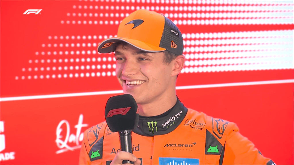 虎扑11月29日讯据天空体育消息,迈凯伦车手兰多-诺里斯在F1卡塔尔大奖赛冲刺赛获得第三名后说道,他在比赛中并没有在意身后的马克斯-维斯塔潘的追击。