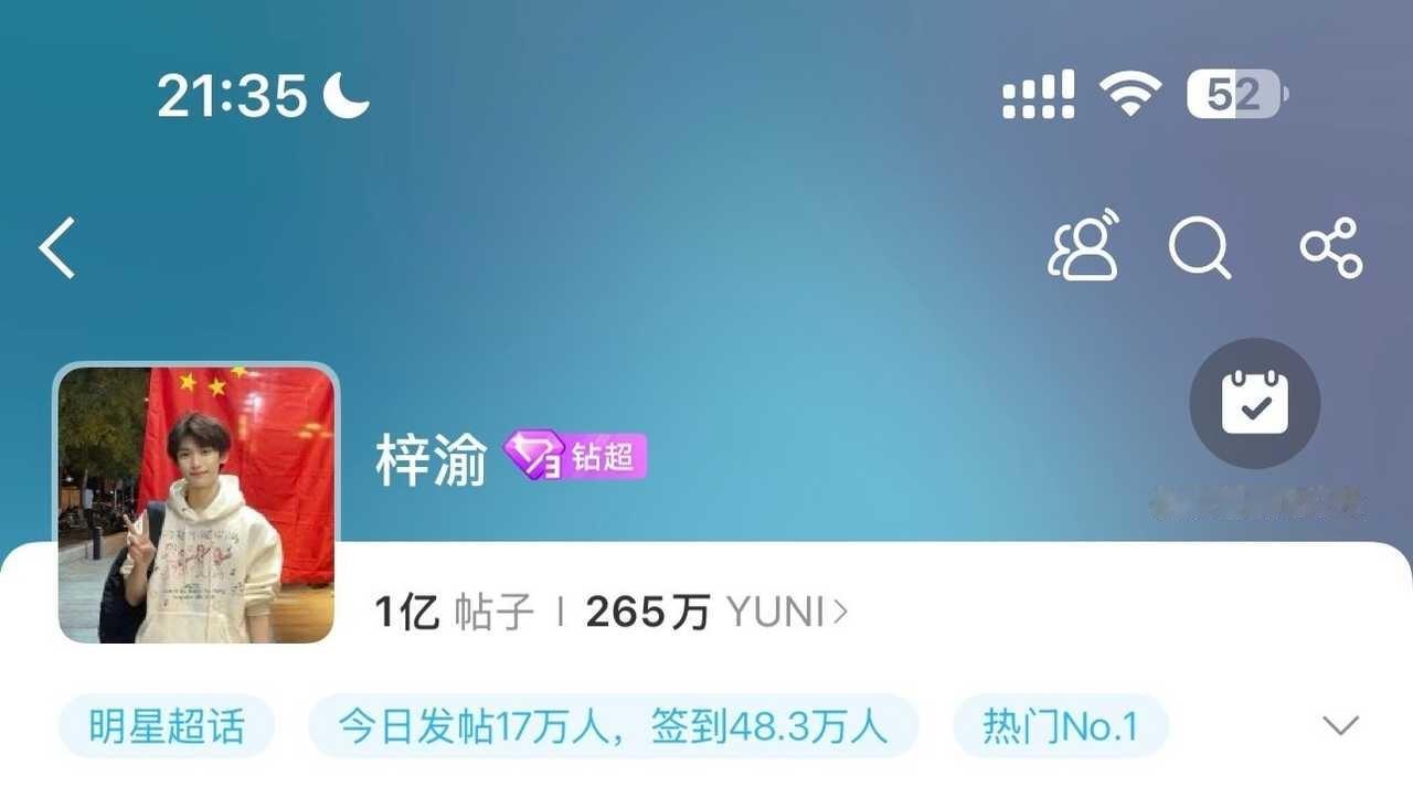 梓渝超话发帖量破亿,火火的很安心 🔥🔥