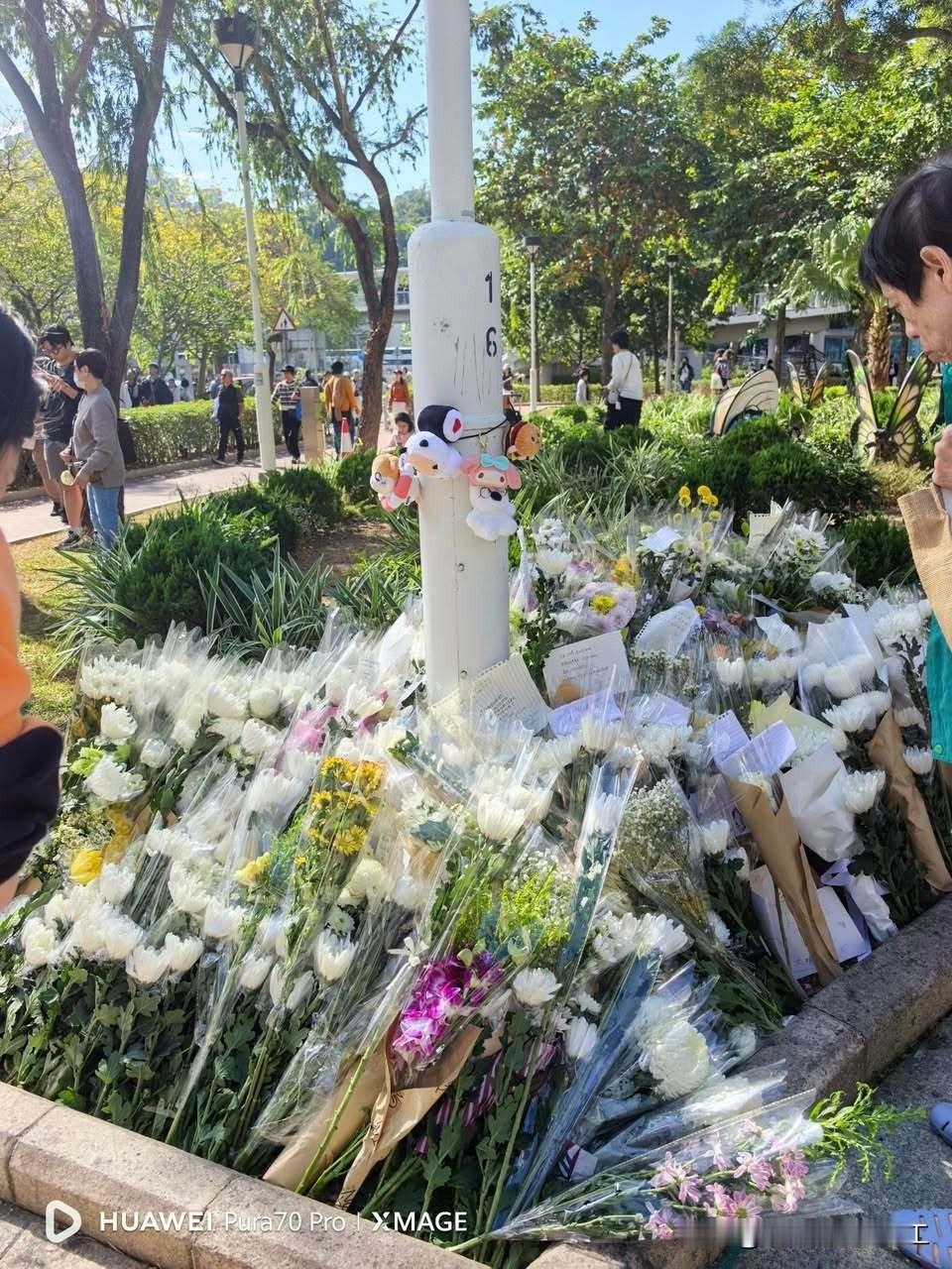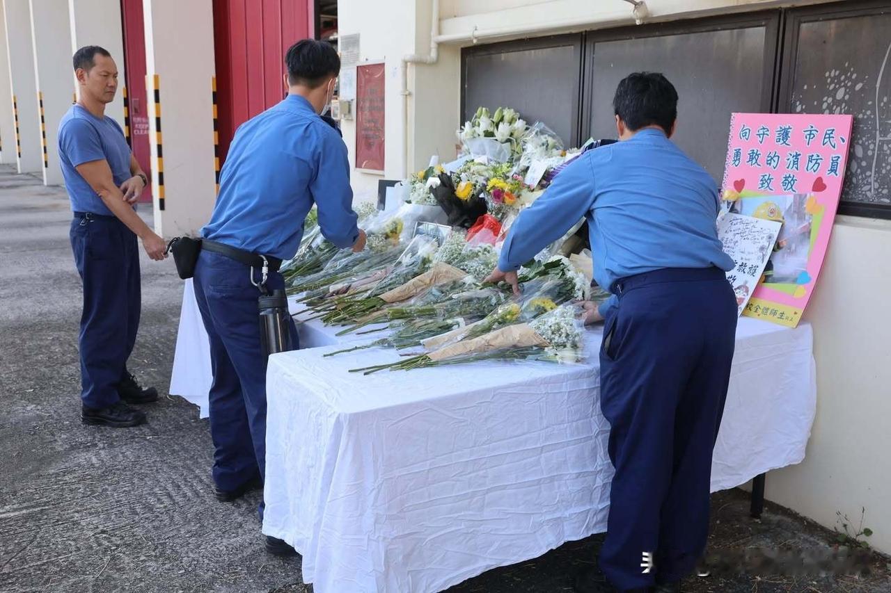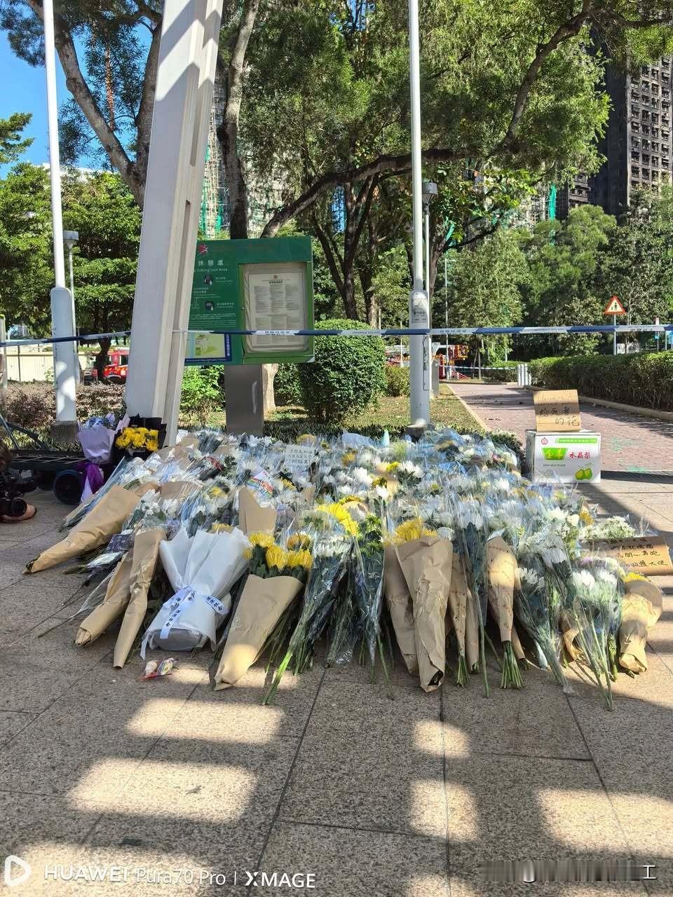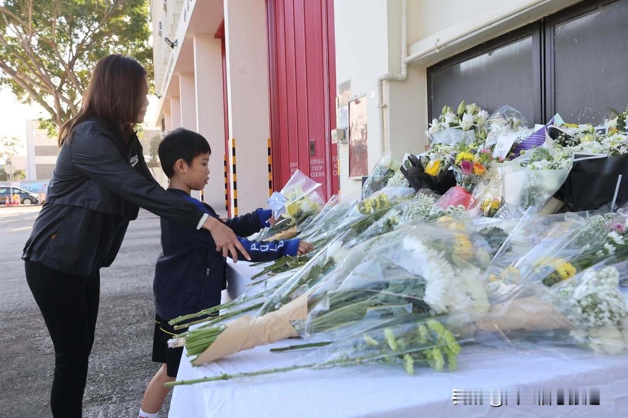 今天假期,有市民到殉职消防员,何伟豪所在的消防局献花;也有到事发的宏福苑悼念!