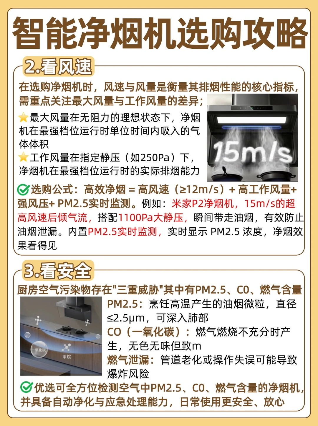 优选可全方位检测空气中PM2.5、C0、燃气含量的净烟机,并具备自动净化与应急处理能力,日常使用更安全、放心
