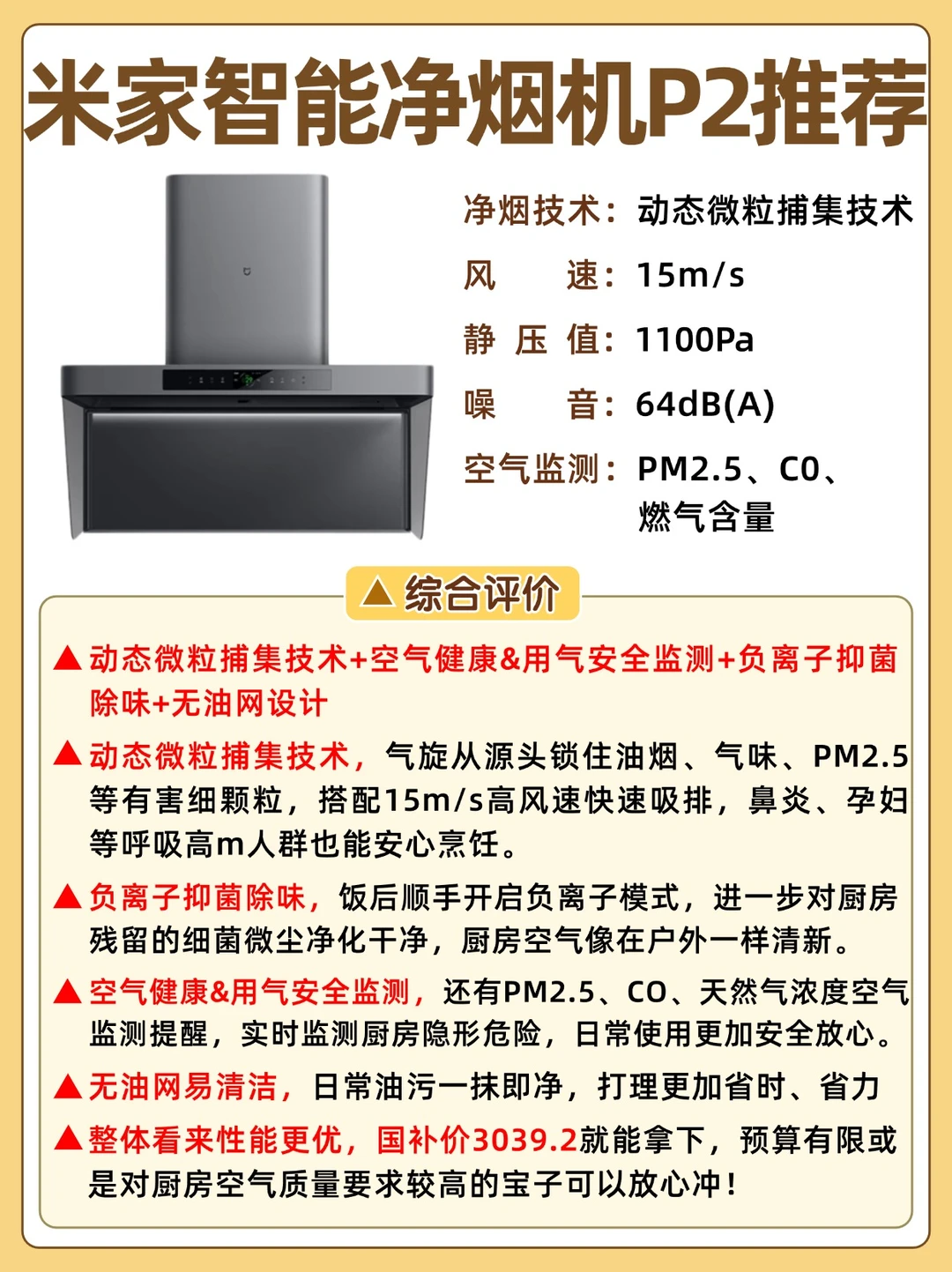 整体看来性能更优,国补价3039.2就能拿下,预算有限或是对厨房空气质量要求较高的宝子可以放心冲!