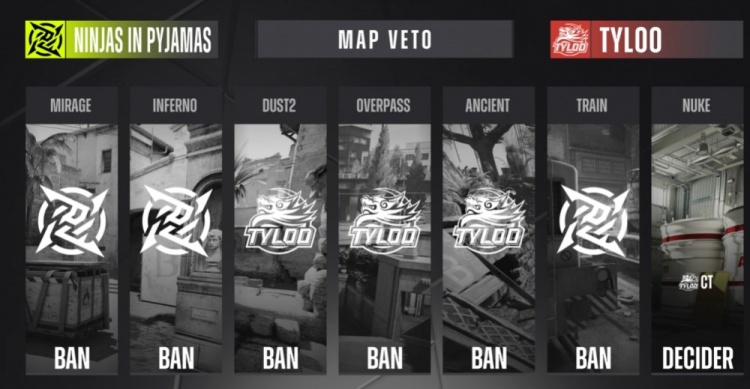 回到长枪回合,NIP三打五下管道去B下包拿分,随后外场Jee大狙首杀Snappi后被sjuush手撕,TYLOO回防稍慢次回合eco,双方比分战平。