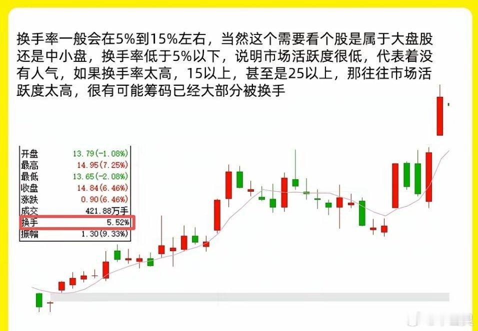 注意!我们做交易一定要右侧交易,也就是趋势交易。个股一旦处于趋势,那往往都是强势股。所以我们强势的个股才是关键,很多人不知道强势股都有哪些表现一、能走出独立大盘的行情,会强于大盘,比如说,大盘在小幅下跌的时候,个股能逆势上涨,板块回调的阶段,个股回调幅度也会比小。二、量价关系比较匹配,股价出现上涨的阶段,成交量的会比之前出现明显的放量,高于均量线,股价回调的阶段,会出现明显缩量,往往量能萎缩比较厉害三、启动形态,股价一旦启动拉升,那股价在低位阶段就会出现大阳线或者涨停板,成交量放出倍量,我们要知道倍量和涨停板都是主力行为,散户是很难做出来。而且这种关键K线,往往是在突破压力位的时候频繁出现四、换手率一般会在5%到15%左右,当然这个需要看个股是属于大盘股还是中小盘,换手率低于5%以下,说明市场活跃度很低,代表着没有人气,如果换手率太高,15以上,甚至是25以上,那往往市场活跃度太高,很有可能筹码已经大部分被换手五、筹码集中,个股一旦出现上涨行情,启动主升之前,那主力肯定是会低位建仓,在筹码分布图里,在低位就会出现明显筹码峰,单峰密集的形态,股价出现上涨,下方的筹码也不会松动,主力已经锁仓六、涨停基因。强势的个股,20个交易里,往往就会有一次或二次涨停板。这种涨停板不管是主力强势介入还是主力洗盘,都代表主力在其中