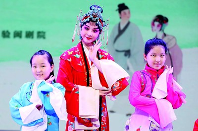 2025年暑期,福建省实验闽剧院的戏曲演员指导小学生学习闽剧表演技艺。光明图片
