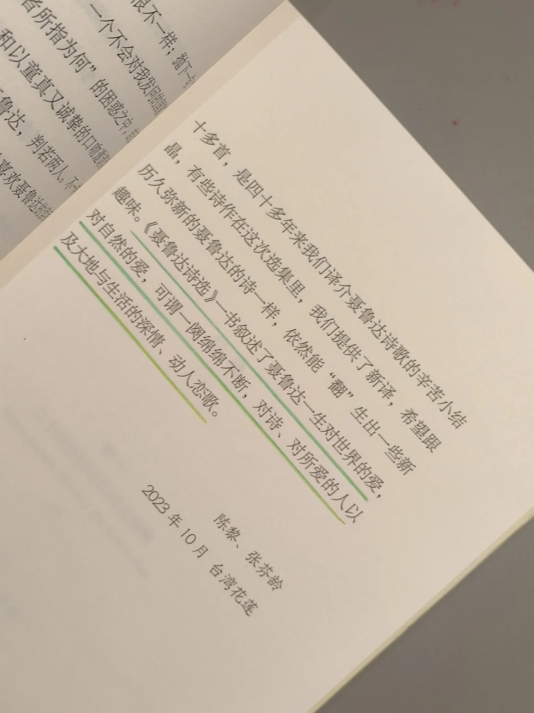 打开的一瞬间,那些从智利荒原、加勒比海风里生长出的文字,带着盐粒与阳光的气息,漫过潮湿的空气,在心里浇出一片干燥的、发烫的绿洲,让每一口呼吸,都染上了诗的薄荷香。