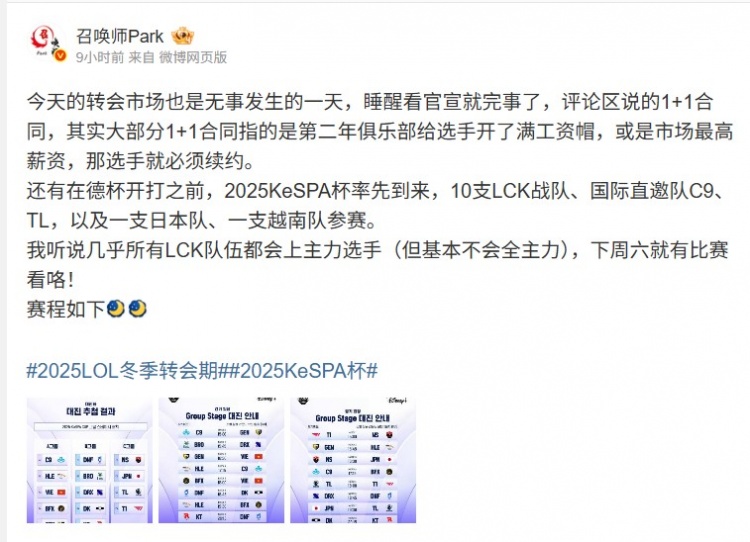 还有在德杯开打之前,2025KeSPA杯率先到来,10支LCK战队、国际直邀队C9、TL,以及一支日本队、一支越南队参赛。