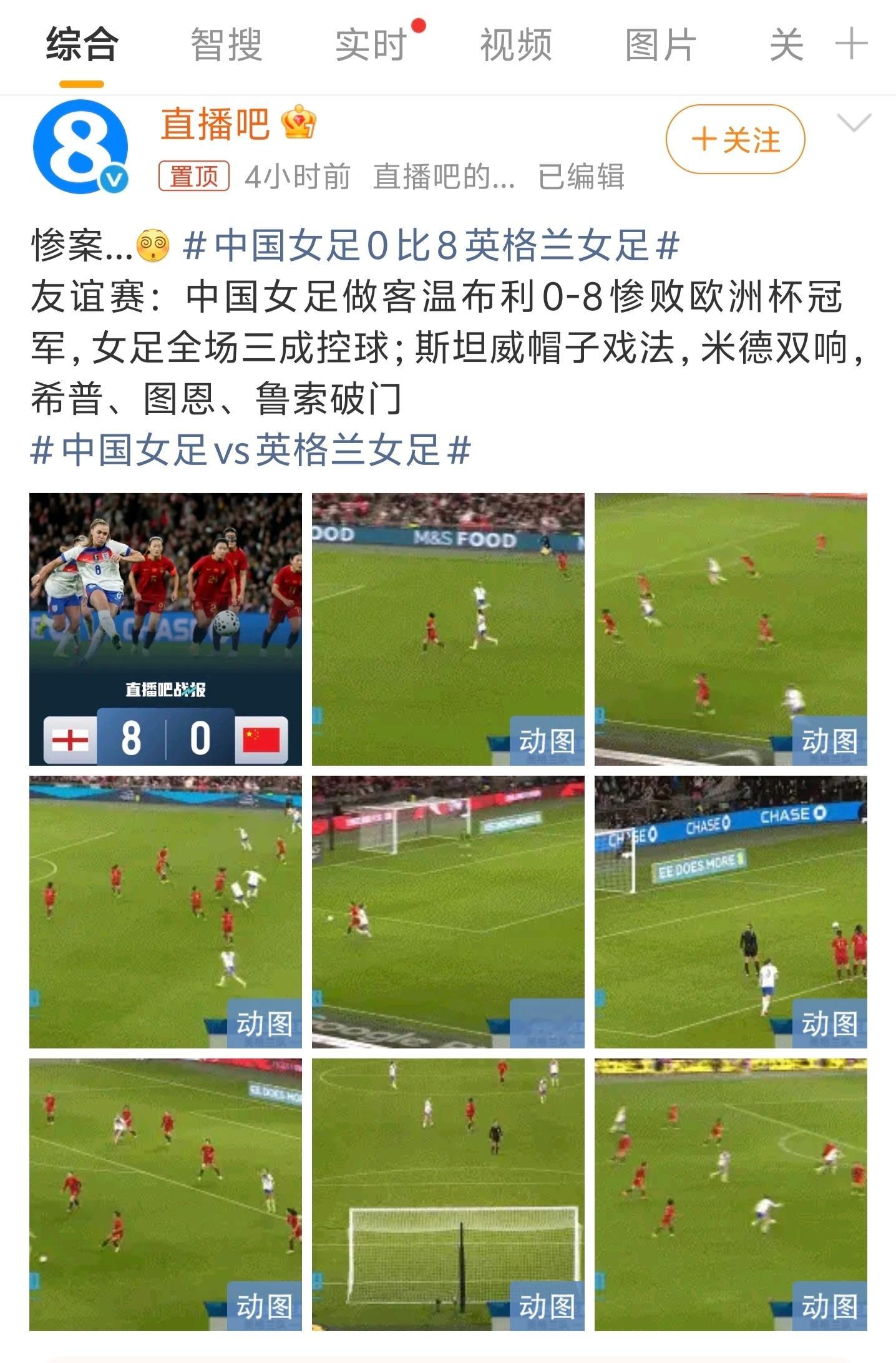 中国女足0比8英格兰女足女足至少曾经辉煌过!比起国足,这真没啥好喷的,有失也会有得,重振旗鼓,未来可能不会有多好,但好不会太差!热点观点 中国女足0比8英格兰女足